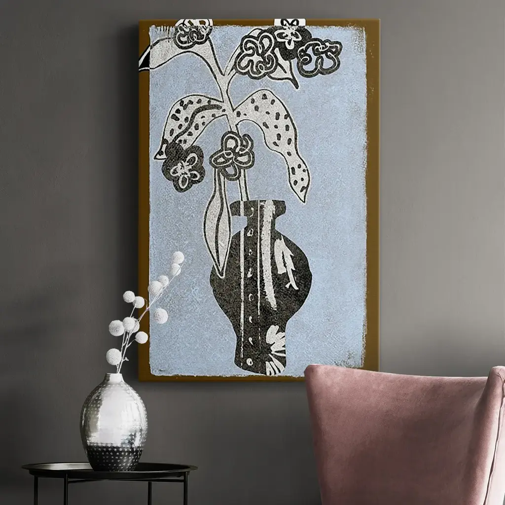 Graphic Flowers in Vase II Premium Gallery Wrapped Canvas - Ready to Hang A premium hand stretched gallery wrapped canvas print created to last. Featuring a beveled a solid wood stretcher bar, each piece comes ready to hand 6 SIZES AVAILABLE 8''X12'' - Overall Size 12''X18'' - Overall Size 18''X27'' - Overall Size 24''x36'' - Overall Size 32''x48'' - Overall Size 40''x60'' - Overall Size Each piece is made to order. Built to Last Each piece comes ready to hang Solid wood stretcher Fade and Water resistant Made domestically