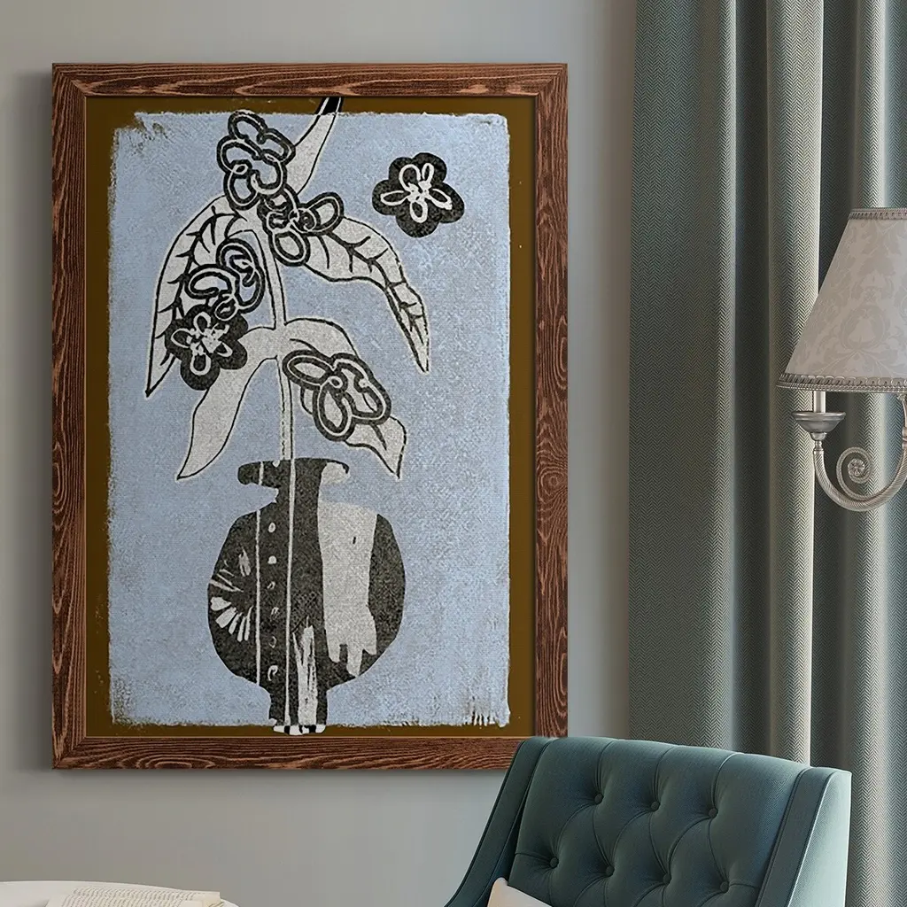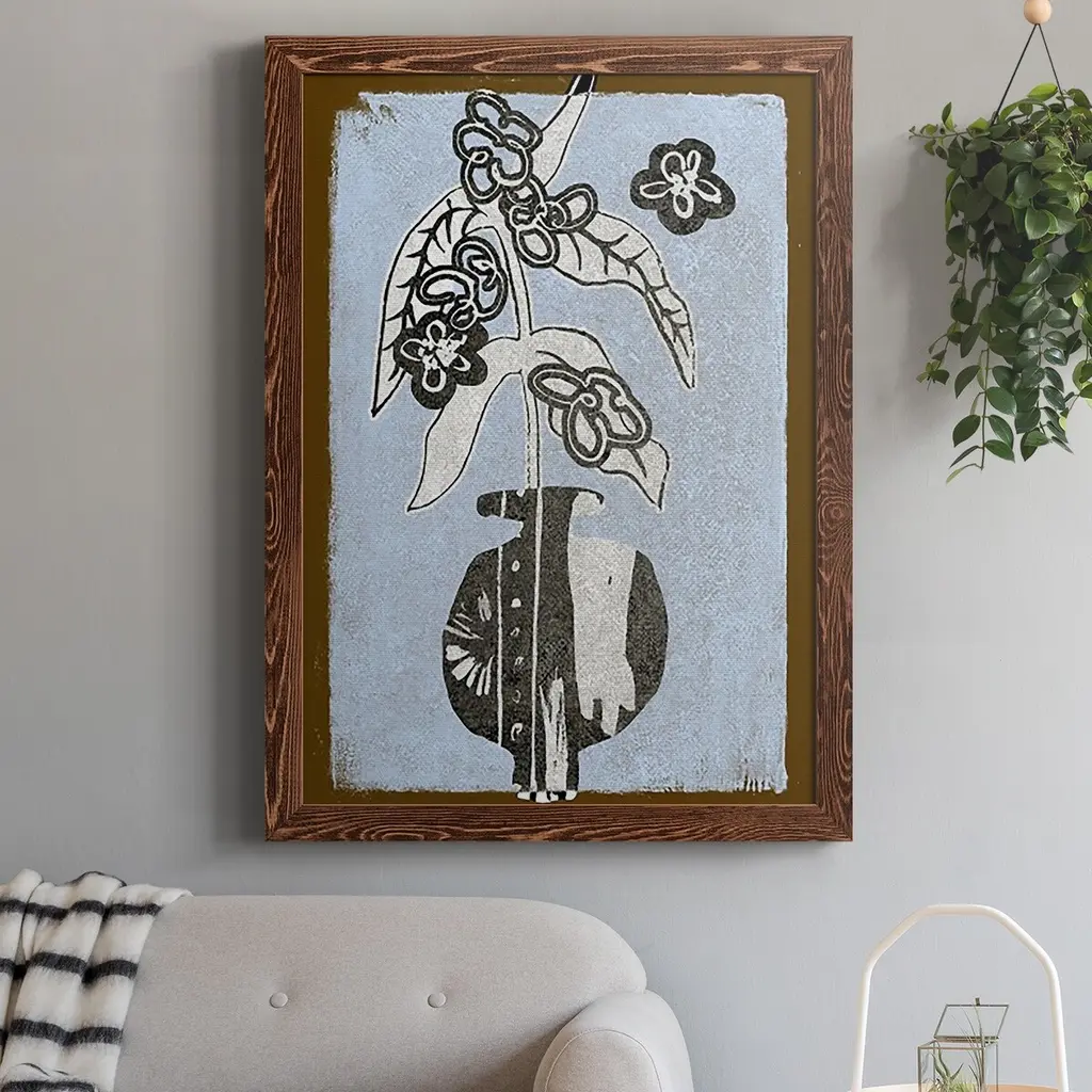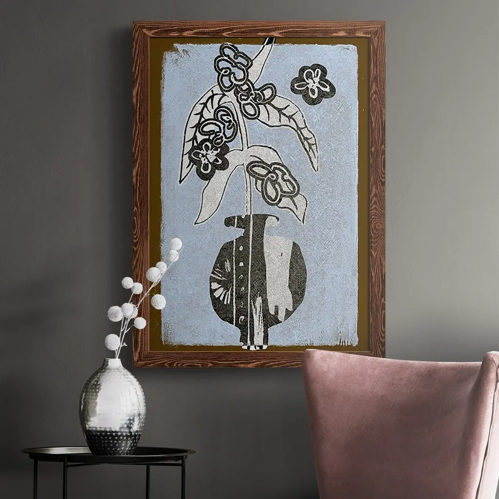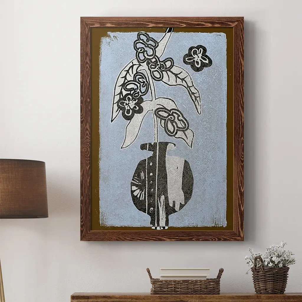 Graphic Flowers In Vase Iv-Premium Framed Canvas - Ready To Hang - 27.5x37.5 - Walnut