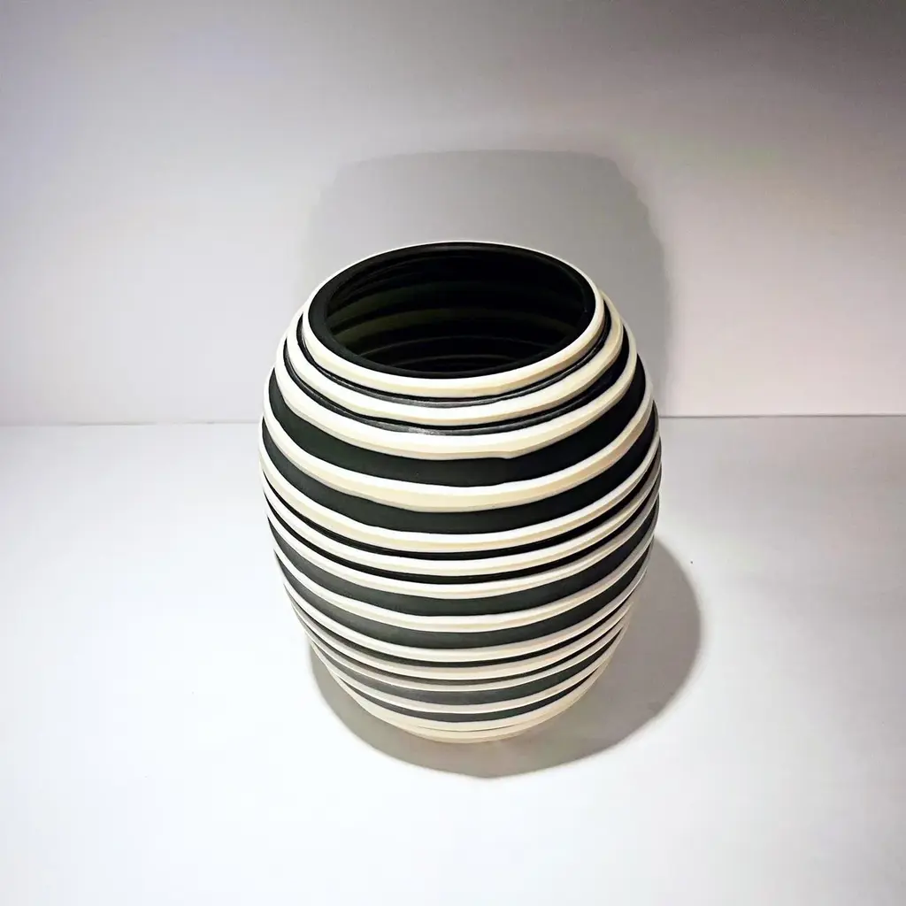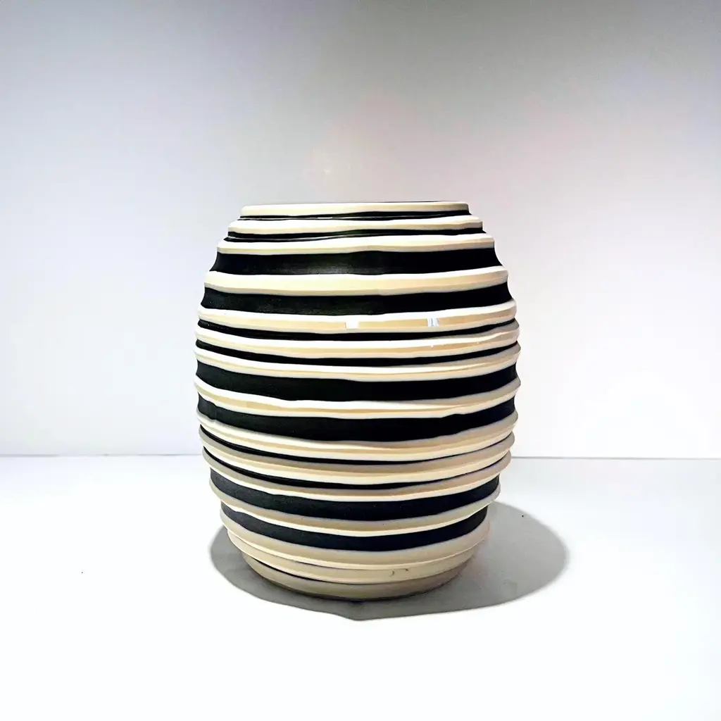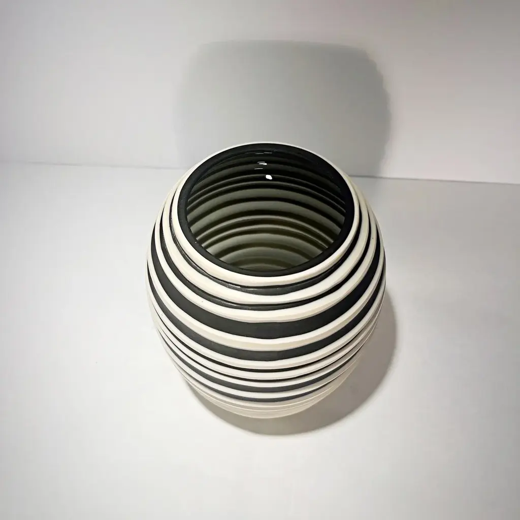 Beautiful Vase by Viterra Art Glass measures 7 x 6 x 6 inches. The vase is of the Viterra Gallery Collection, and showcases intricate European art glass techniques. Crafted by a skilled team of master glassblowers, each with over 20 years of experience, it embodies craftsmanship and precision. Every vase is handmade and mouth-blown, with each piece displaying its own unique, captivating variations. Designed by Erica Friedman.
