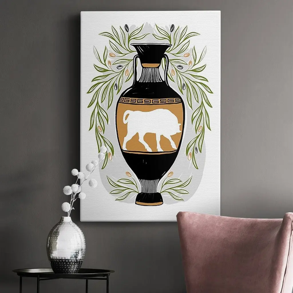 Greek Vases IV Premium Gallery Wrapped Canvas - Ready to Hang A premium hand stretched gallery wrapped canvas print created to last. Featuring a beveled a solid wood stretcher bar, each piece comes ready to hand 6 SIZES AVAILABLE 8''X12'' - Overall Size 12''X18'' - Overall Size 18''X27'' - Overall Size 24''x36'' - Overall Size 32''x48'' - Overall Size 40''x60'' - Overall Size Each piece is made to order. Built to Last Each piece comes ready to hang Solid wood stretcher Fade and Water resistant Made domestically