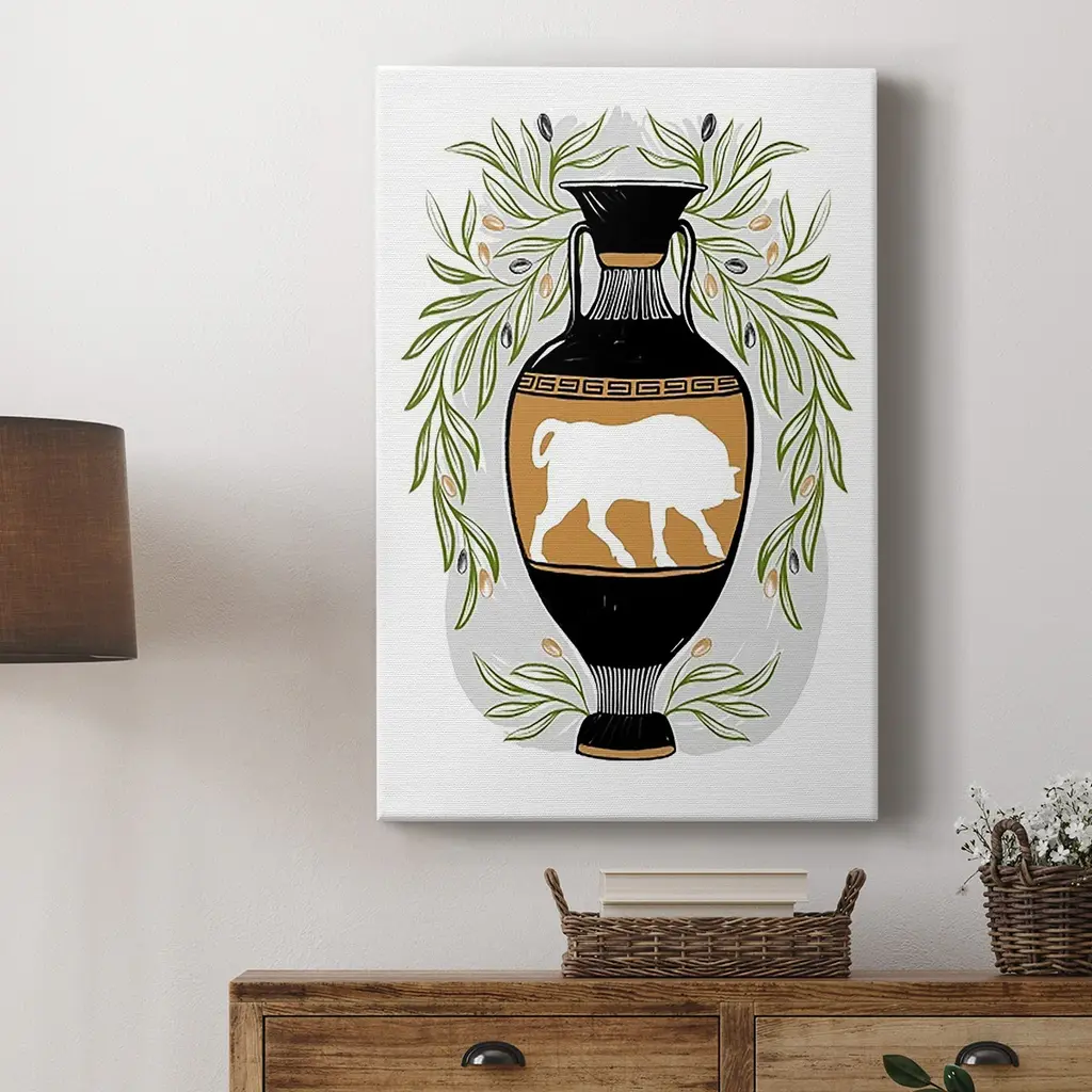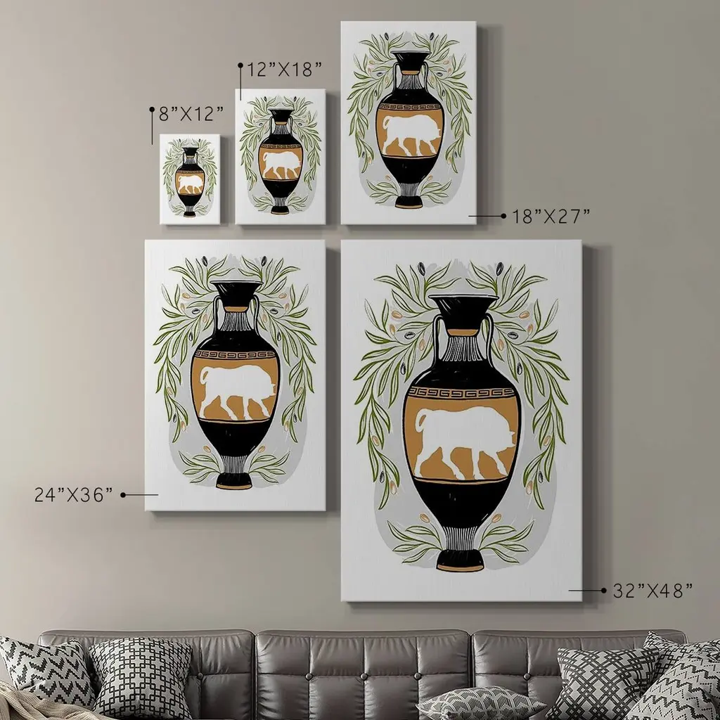 Greek Vases IV Premium Gallery Wrapped Canvas - Ready to Hang A premium hand stretched gallery wrapped canvas print created to last. Featuring a beveled a solid wood stretcher bar, each piece comes ready to hand 6 SIZES AVAILABLE 8''X12'' - Overall Size 12''X18'' - Overall Size 18''X27'' - Overall Size 24''x36'' - Overall Size 32''x48'' - Overall Size 40''x60'' - Overall Size Each piece is made to order. Built to Last Each piece comes ready to hang Solid wood stretcher Fade and Water resistant Made domestically