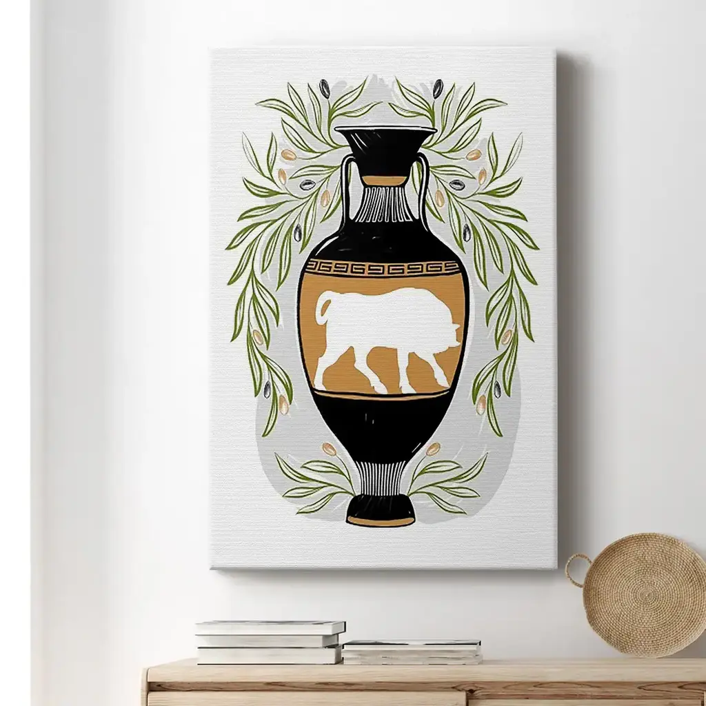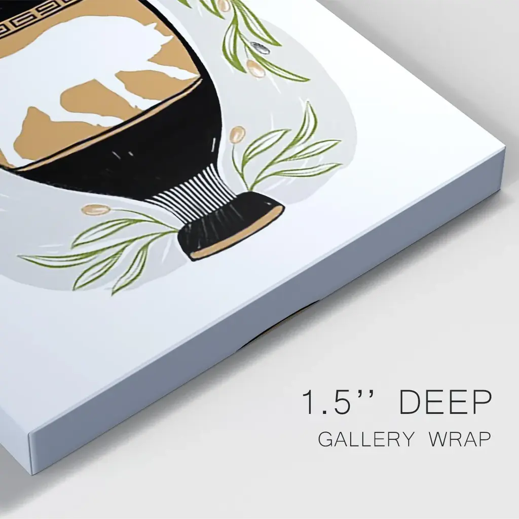 Greek Vases IV Premium Gallery Wrapped Canvas - Ready to Hang A premium hand stretched gallery wrapped canvas print created to last. Featuring a beveled a solid wood stretcher bar, each piece comes ready to hand 6 SIZES AVAILABLE 8''X12'' - Overall Size 12''X18'' - Overall Size 18''X27'' - Overall Size 24''x36'' - Overall Size 32''x48'' - Overall Size 40''x60'' - Overall Size Each piece is made to order. Built to Last Each piece comes ready to hang Solid wood stretcher Fade and Water resistant Made domestically