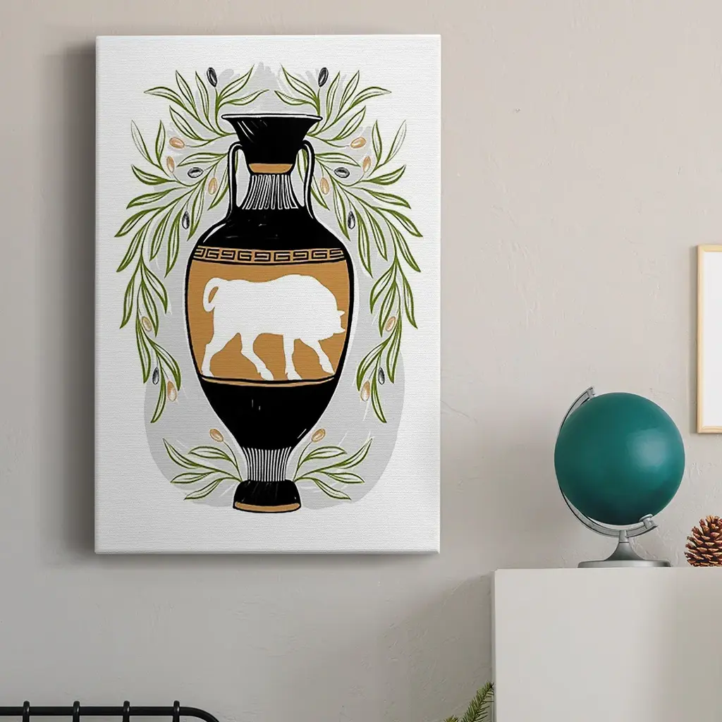 Greek Vases IV Premium Gallery Wrapped Canvas - Ready to Hang A premium hand stretched gallery wrapped canvas print created to last. Featuring a beveled a solid wood stretcher bar, each piece comes ready to hand 6 SIZES AVAILABLE 8''X12'' - Overall Size 12''X18'' - Overall Size 18''X27'' - Overall Size 24''x36'' - Overall Size 32''x48'' - Overall Size 40''x60'' - Overall Size Each piece is made to order. Built to Last Each piece comes ready to hang Solid wood stretcher Fade and Water resistant Made domestically