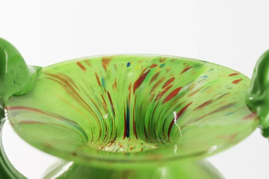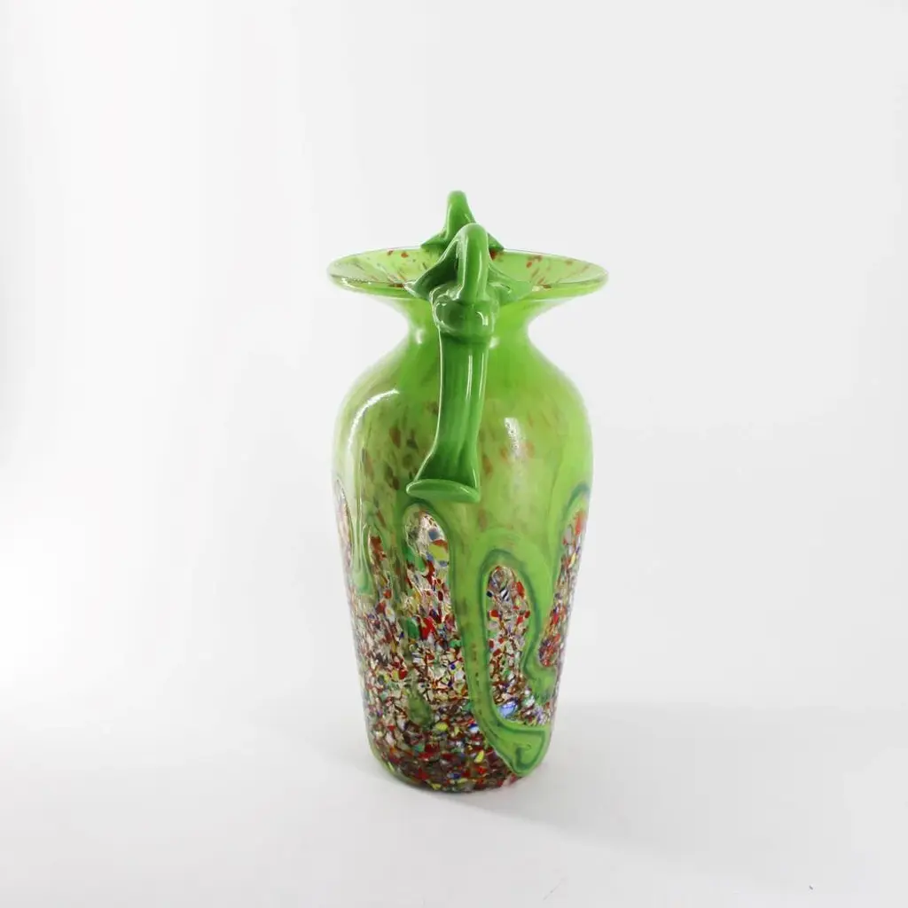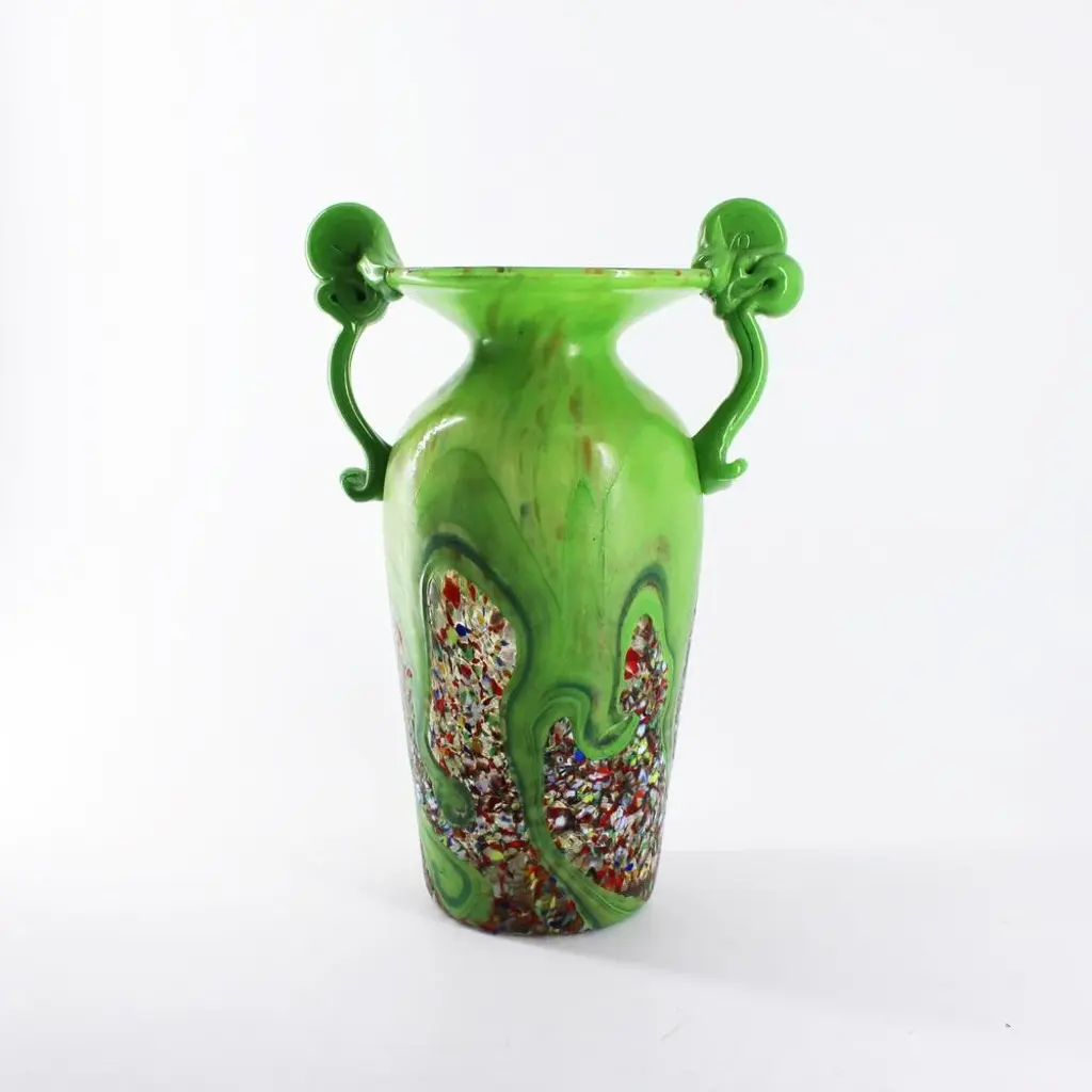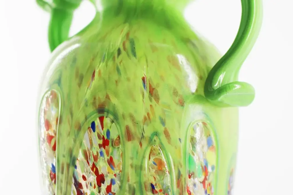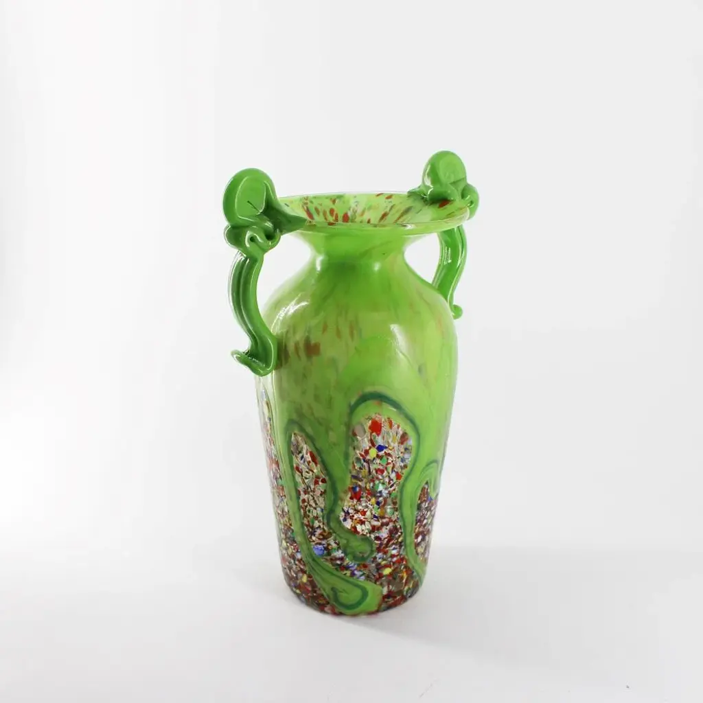 This multi-colored amphora vase, handmade on the island of Murano, features a striking apiombic green with a soft, opaque finish. Its timeless shape paired with bold, modern colors creates a perfect balance of tradition and contemporary style.