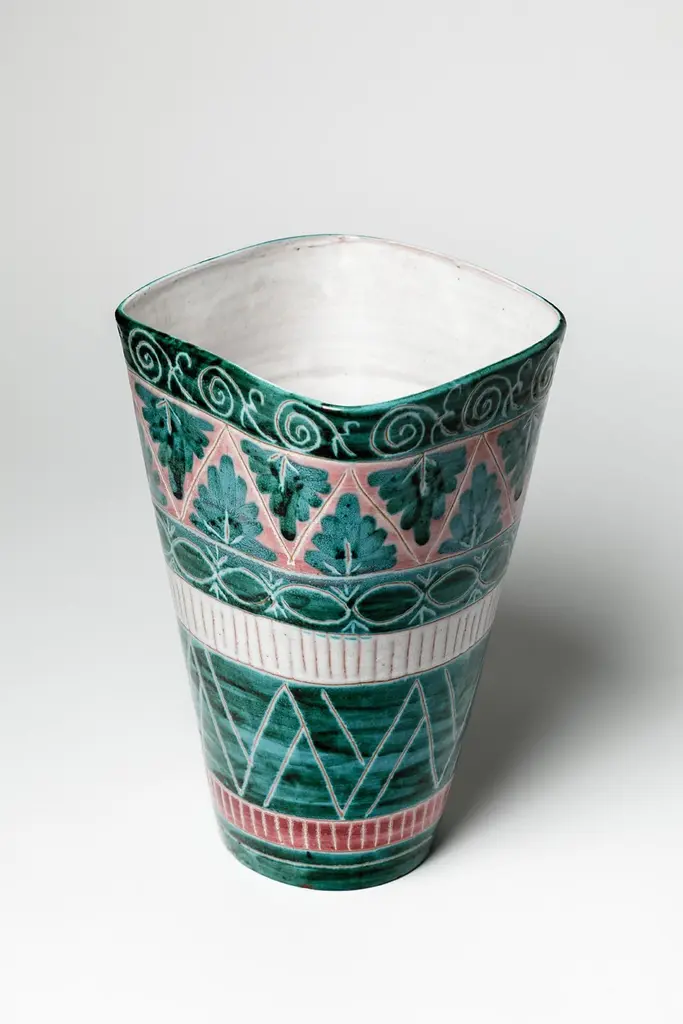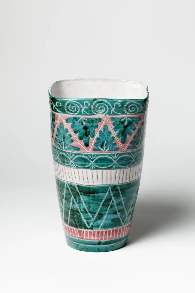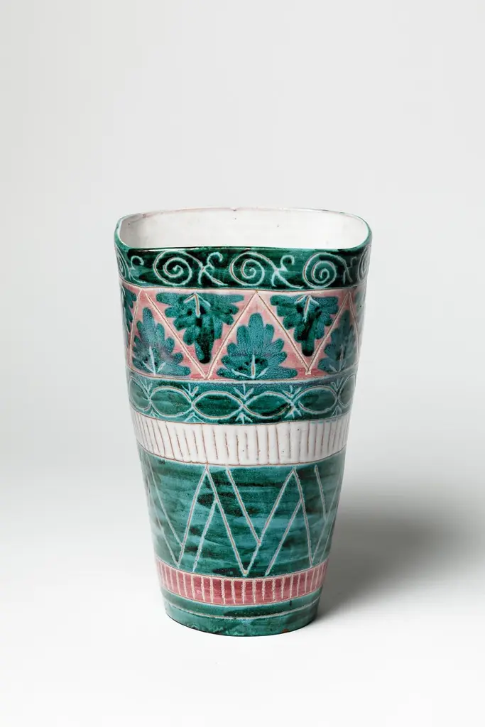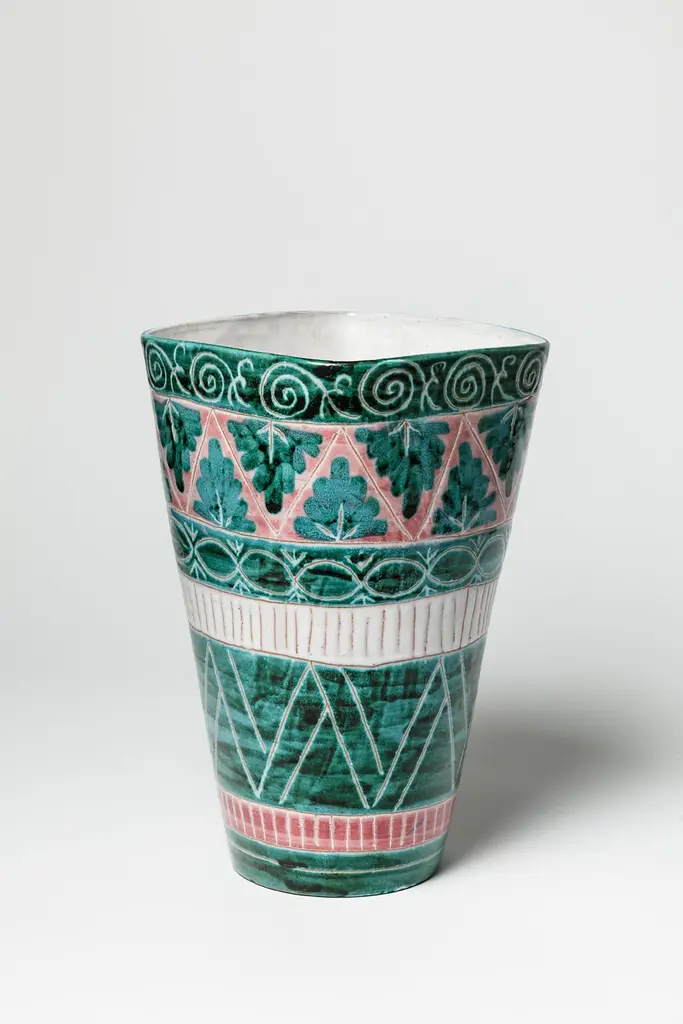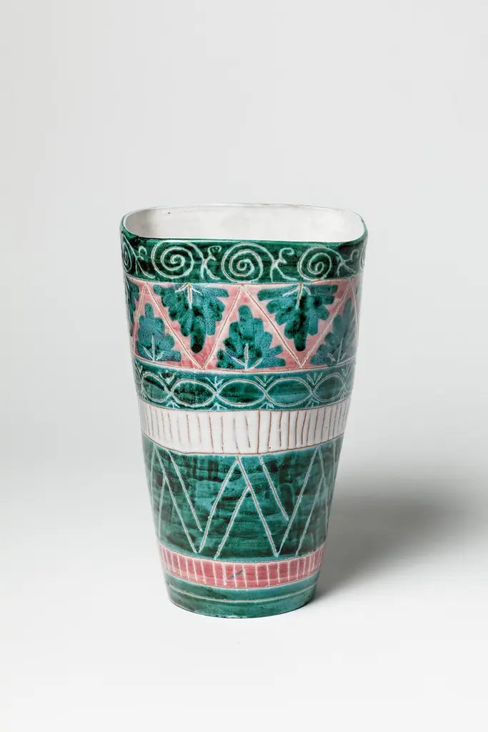 Green And White Mid-Century Design Ceramic Vase By Jean Derval & Picault 1950