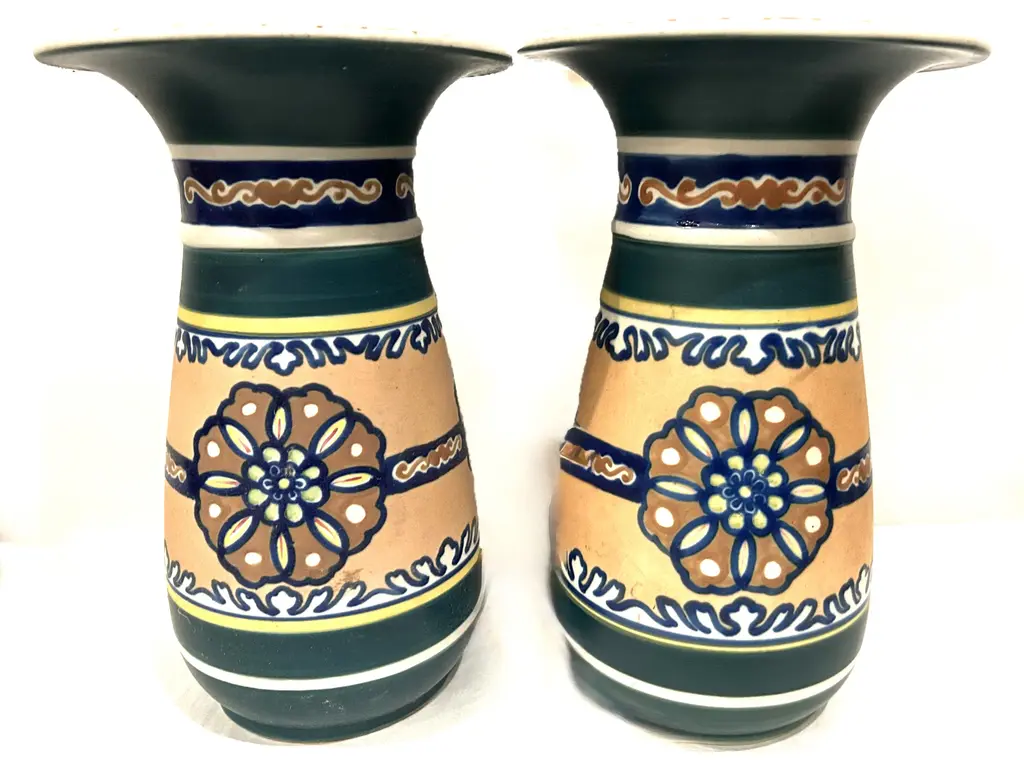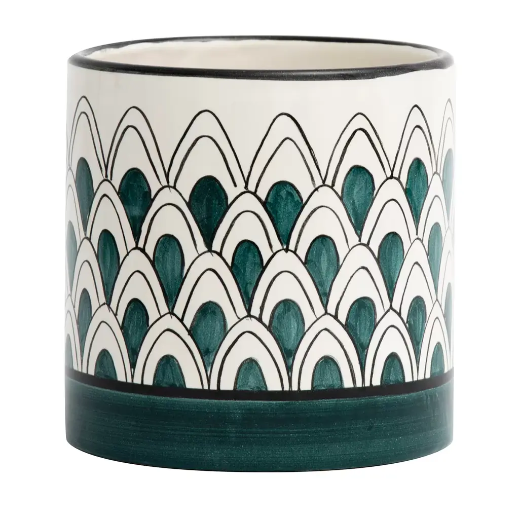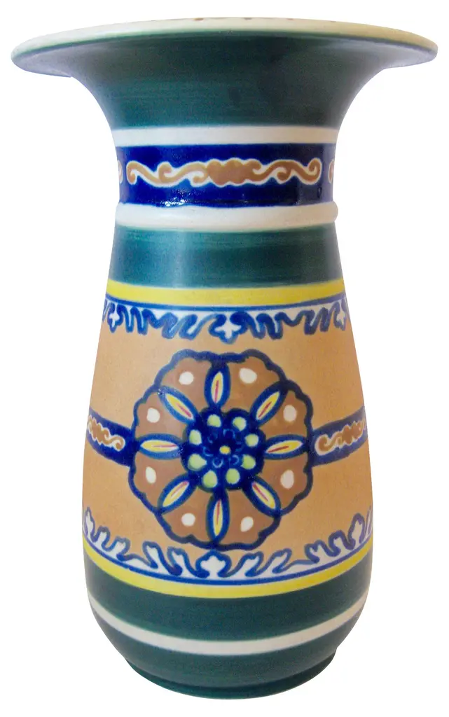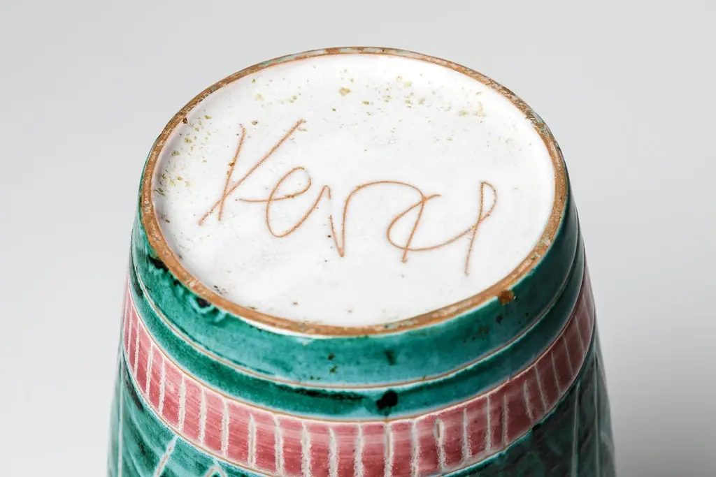 Green And White Mid-Century Design Ceramic Vase By Jean Derval & Picault 1950