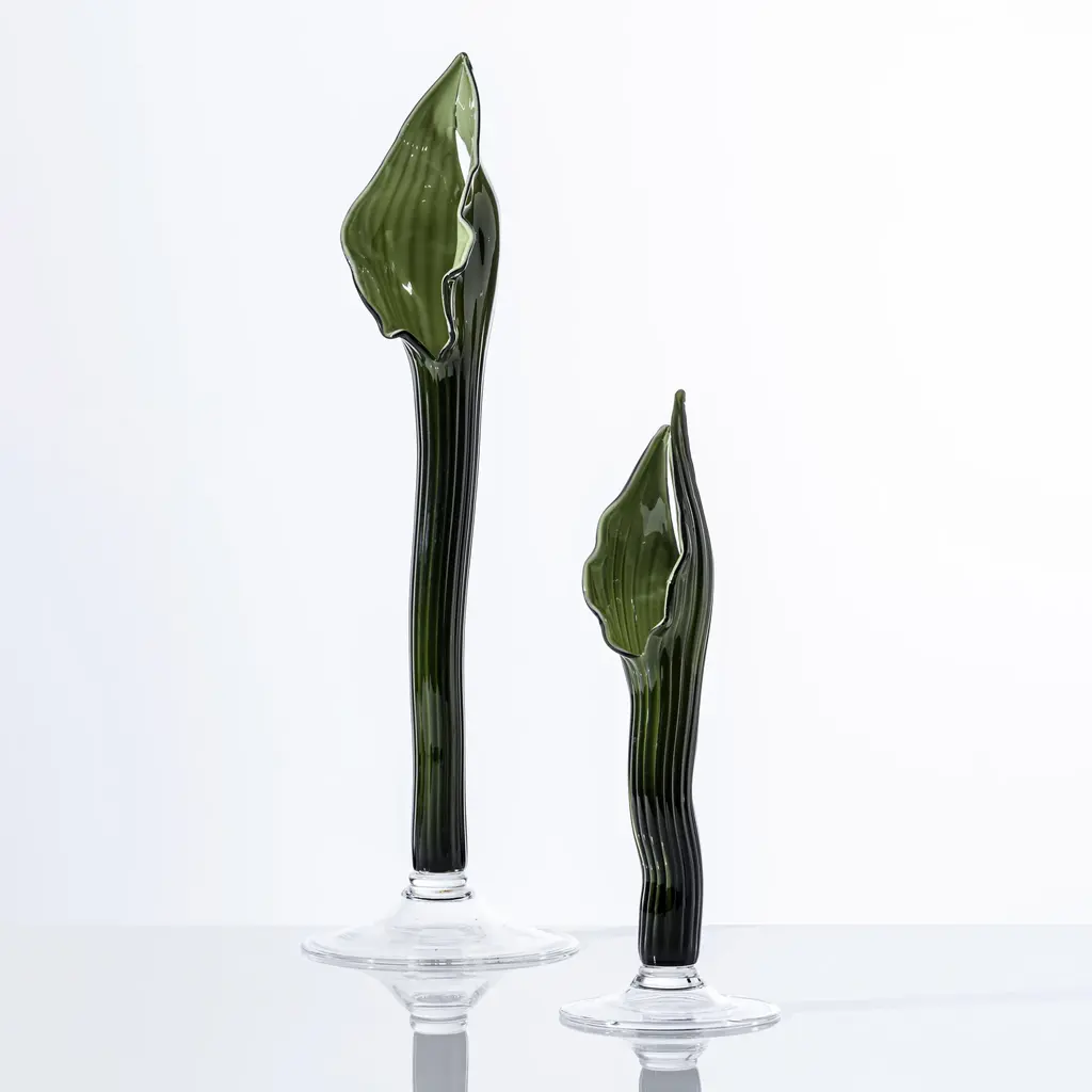 Introducing Chrysalis, a luxurious pair of vases crafted by Frèdèric Duprè. Inspired by nature, the organic and lanceolate shape in Apple Green is an elegant addition to any space. Let the sculptural base and vertical thrust of these vases transform your home into a sophisticated oasis.