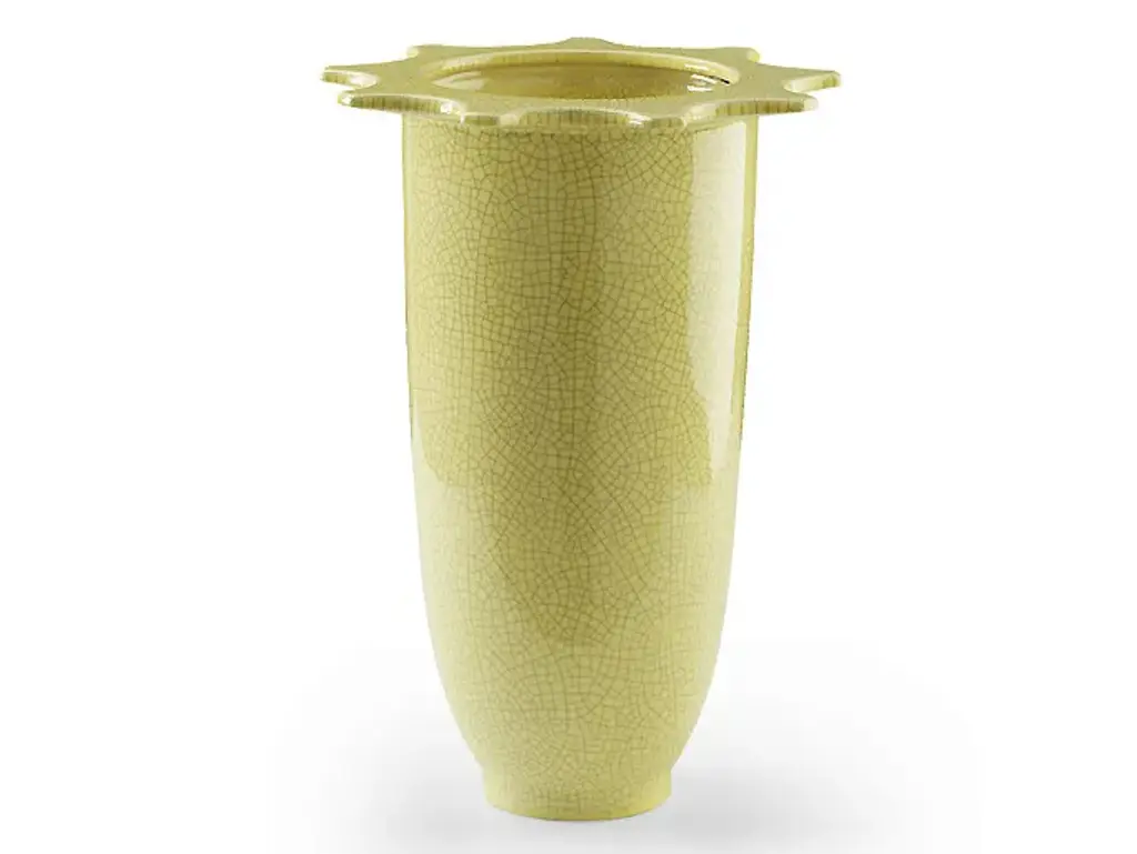Porcelain. Green/White Glaze. Green And White Glazed Porcelain. 4.75W X 4.75D X 12H