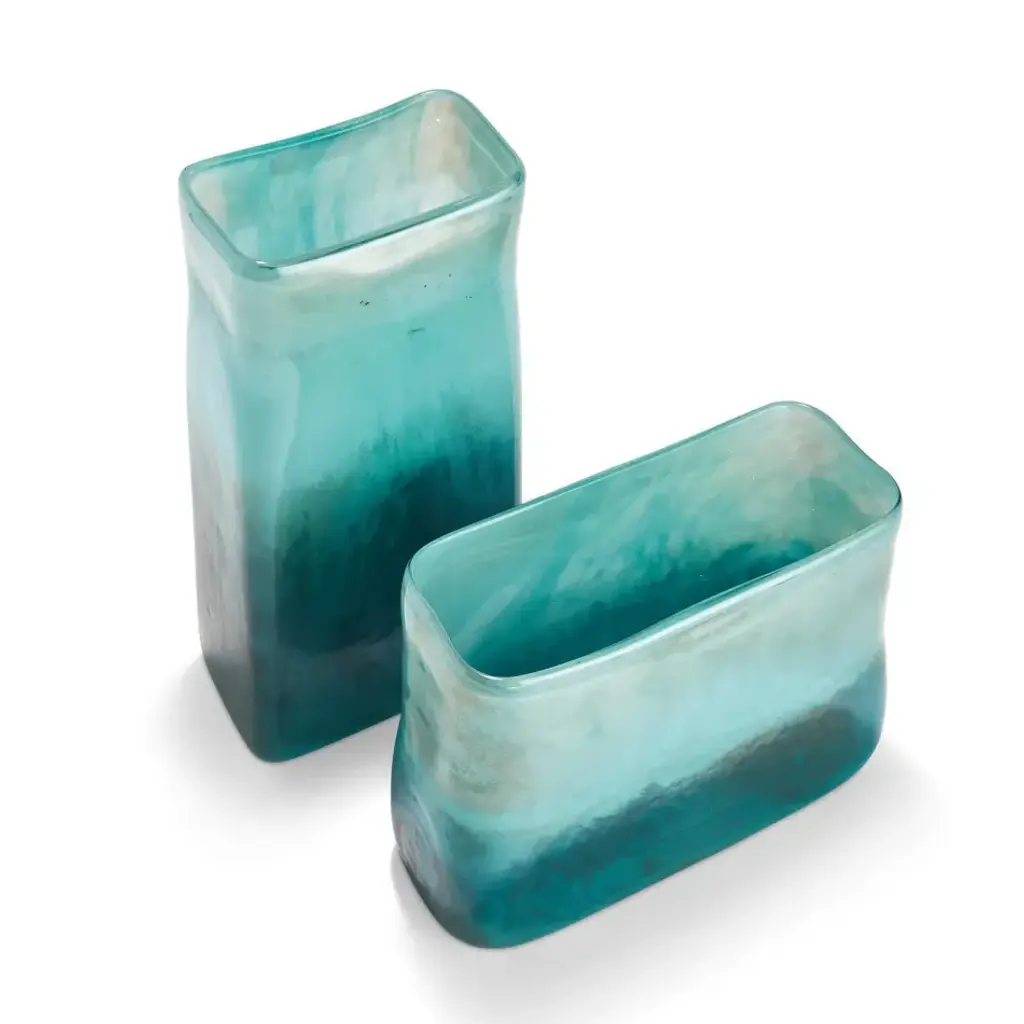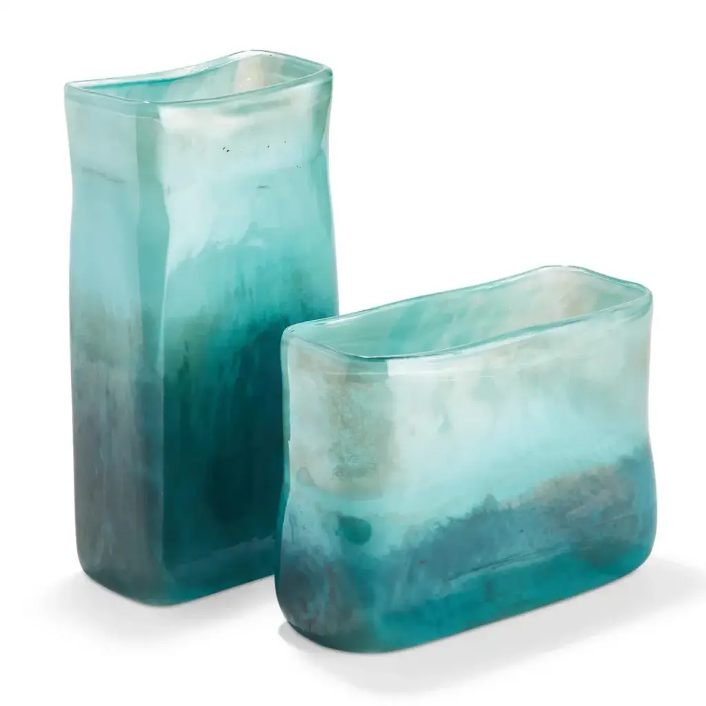 Green To Blue Landscape Set Of 2 Vases Hand-Blown Glass