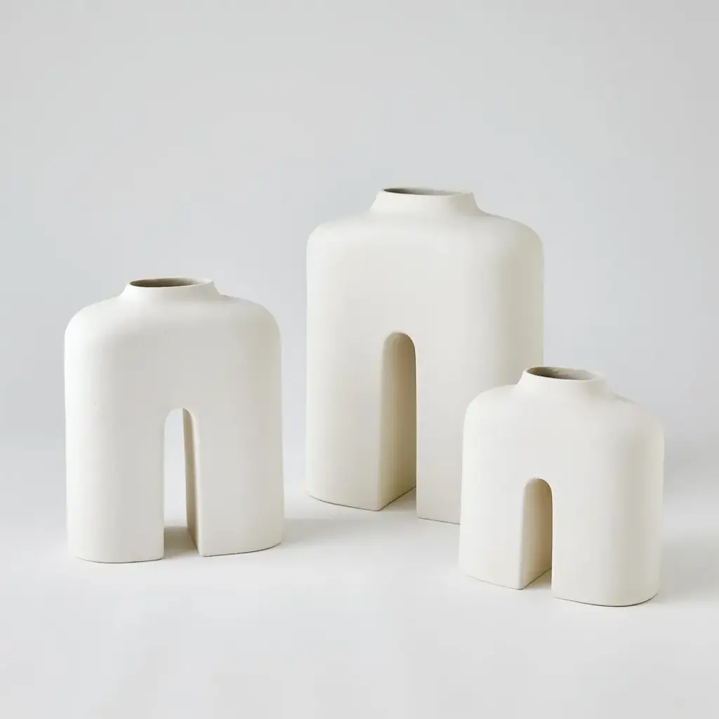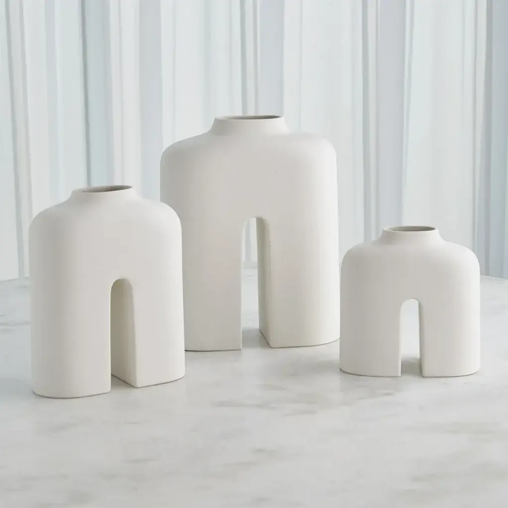 Handcrafted by Portuguese artisans, the Guardian Vases are made of ceramic with a textured cream finish. From a fashion forward perspective, Global Views offers accessories, furniture, statement lighting, and an assortment of rugs and mirrors to add beauty and joy to your home.