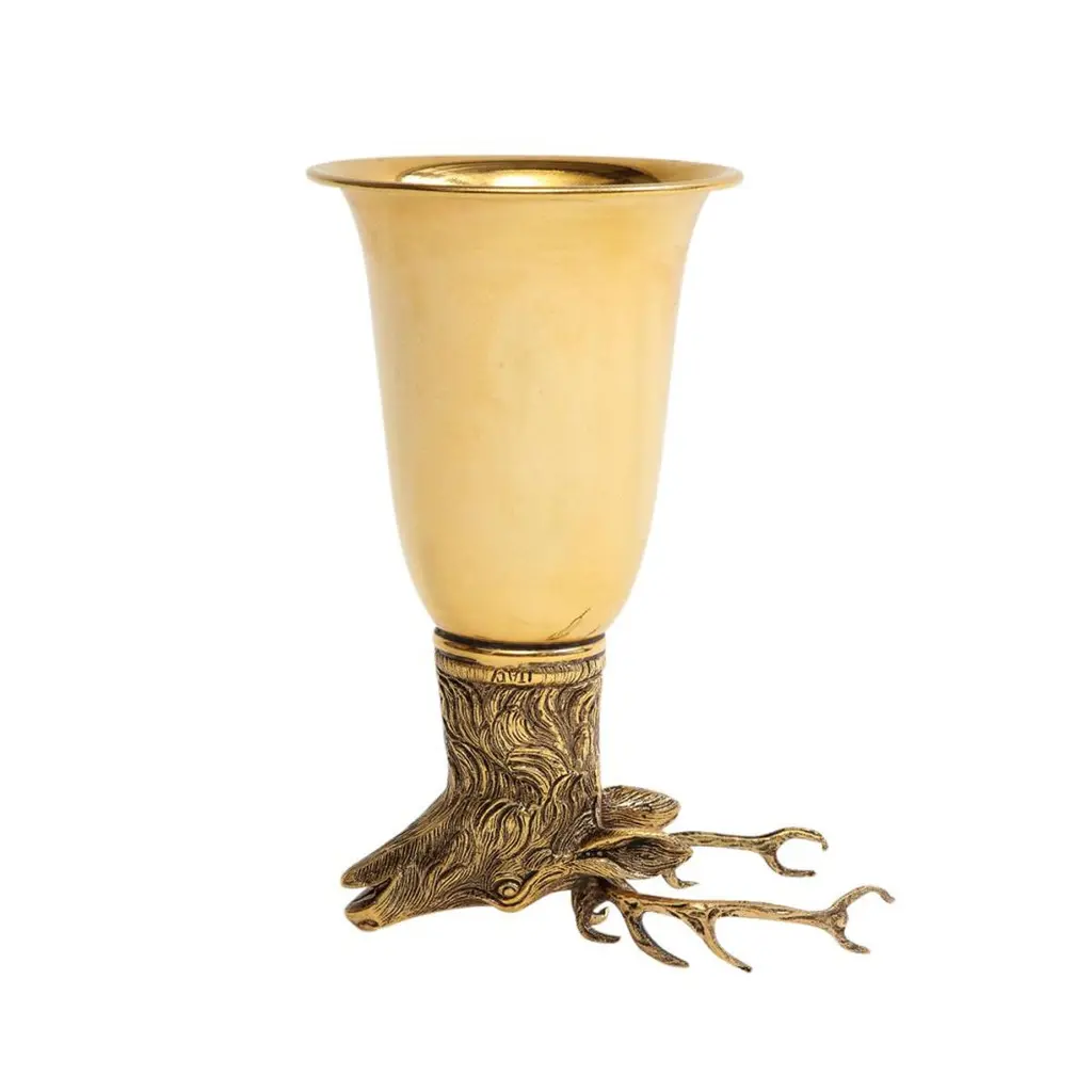 Gucci Stag Stirrup Cup Vase, Brass, Gold Washed, Signed