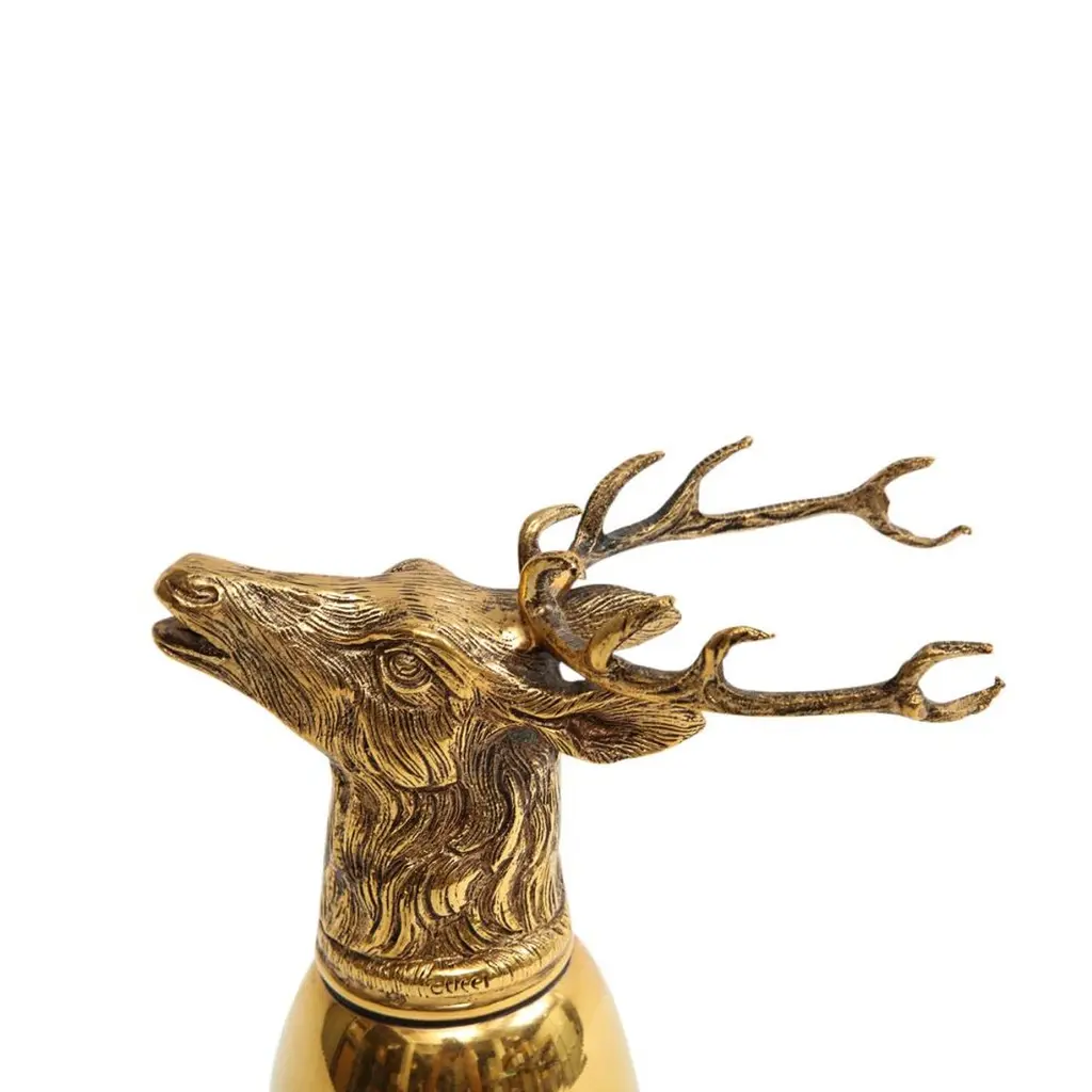 Gucci stag stirrup cup, brass, gold washed, Signed. The largest of the stag stirrup cups. Can be displayed resting on the stag's antlers and used as a vase (photo 17). Two separate engraved signatures on the collar of the stag which read: Gucci and Italy.