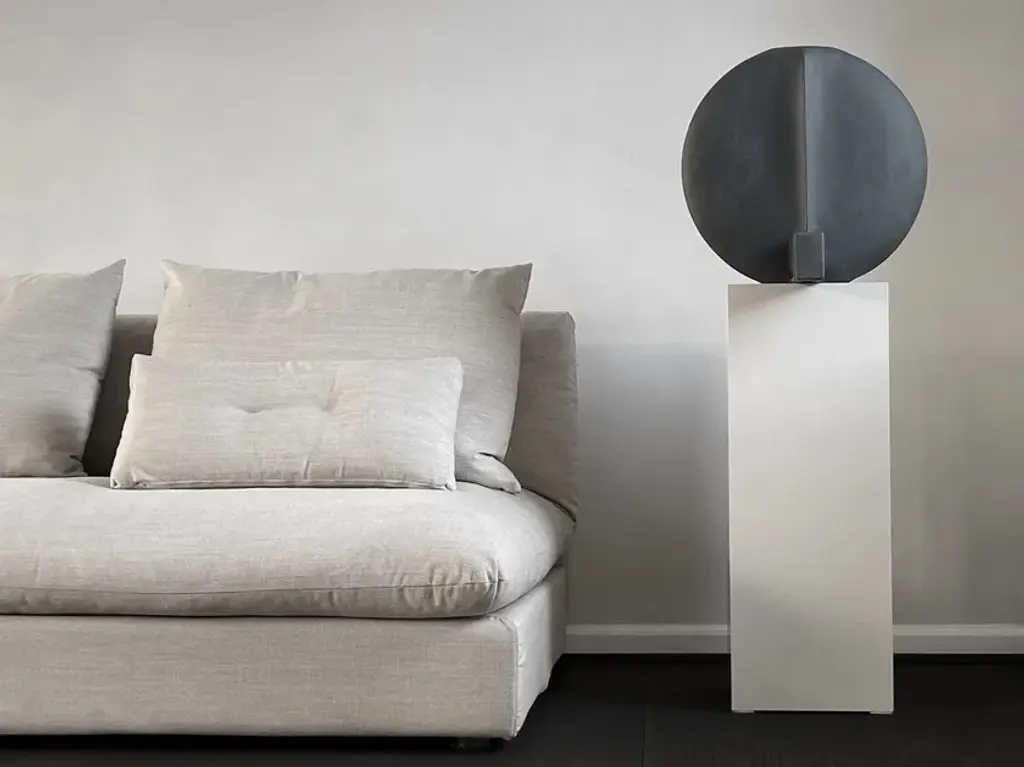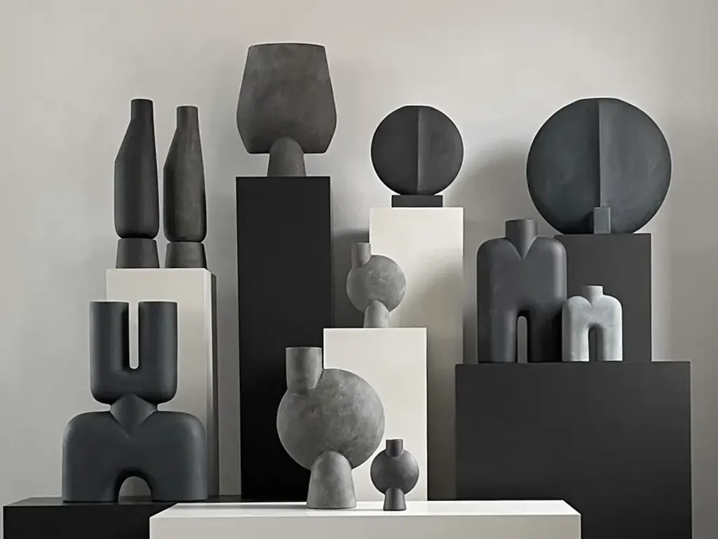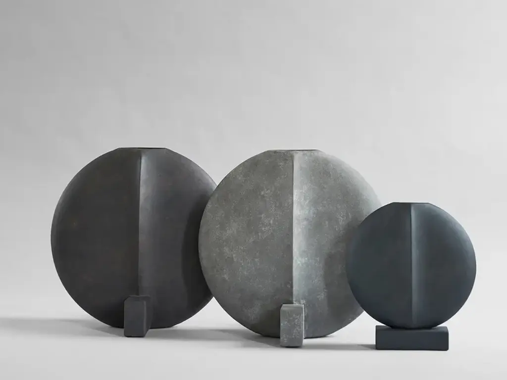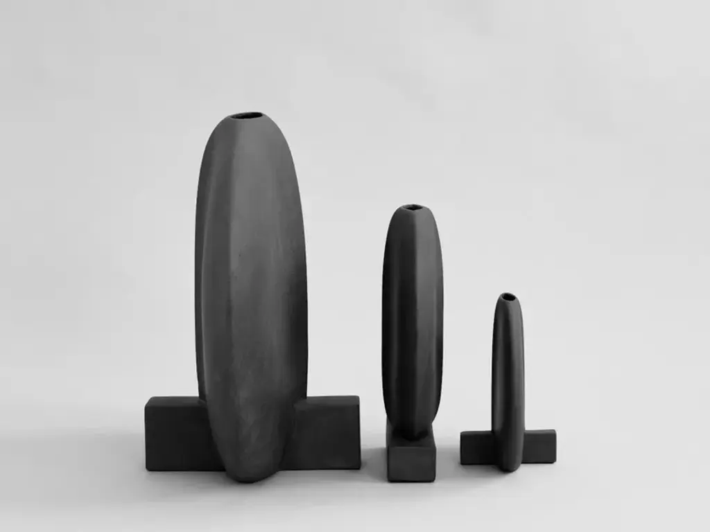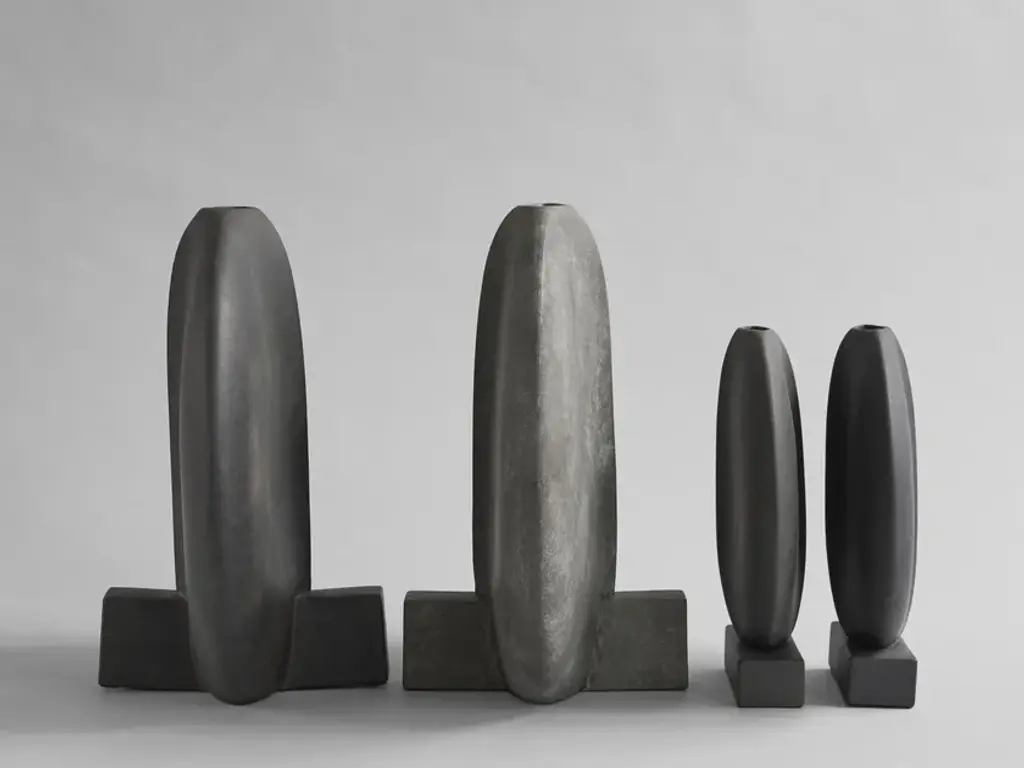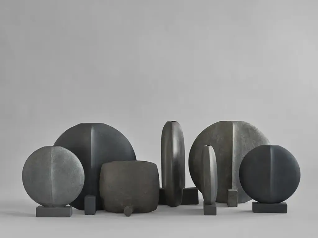 The connection between the sharp archetypical geometric lines and thin silhouettes of the GUGGENHEIM collection creates a decorative, optical illusion. Its three-dimensional form is intriguing from any angle. The texture of the handmade surface beautifully catches the light and becomes an artistic object in the space. The hand glazed ceramic collection may vary slightly in terms of colour and it is not 100% waterproof.
