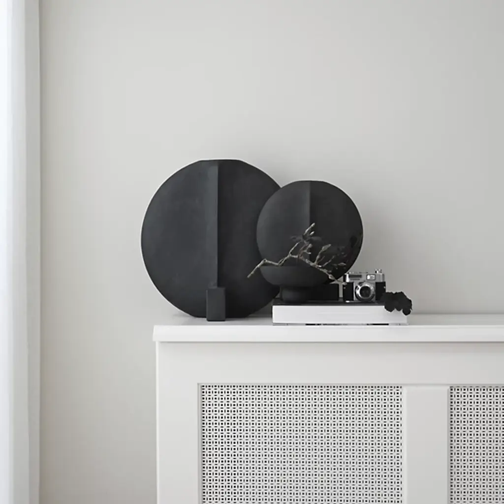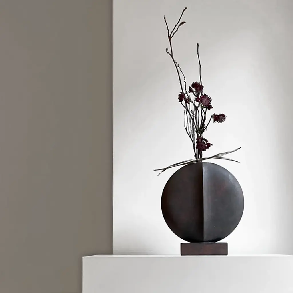 The Guggenheim Mini Vase from 101 Copenhagen infuses your space with a bold fusion of precisely crafted, simple geometric shapes, creating an air of refined elegance. Designed by Kristian Sofus Hansen and Tommy Hyldahl, this ceramic vase showcases sharp, angular lines and a sleek profile resting on a rectangular base, offering a dynamic visual appeal that differs from every angle. Each vase is handcrafted with a distinctive textured surface, playing with light and bringing a unique character to contemporary interiors.
