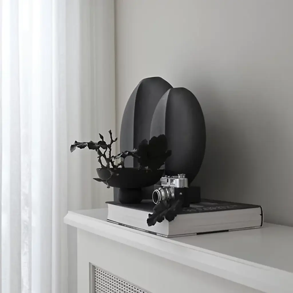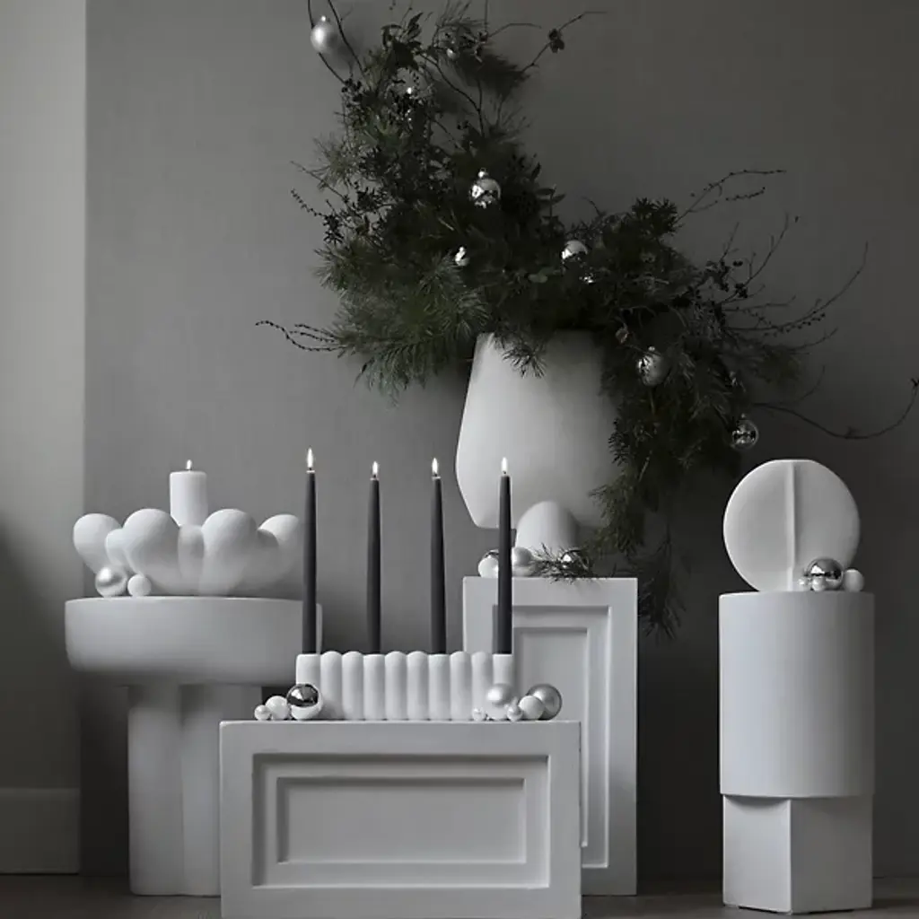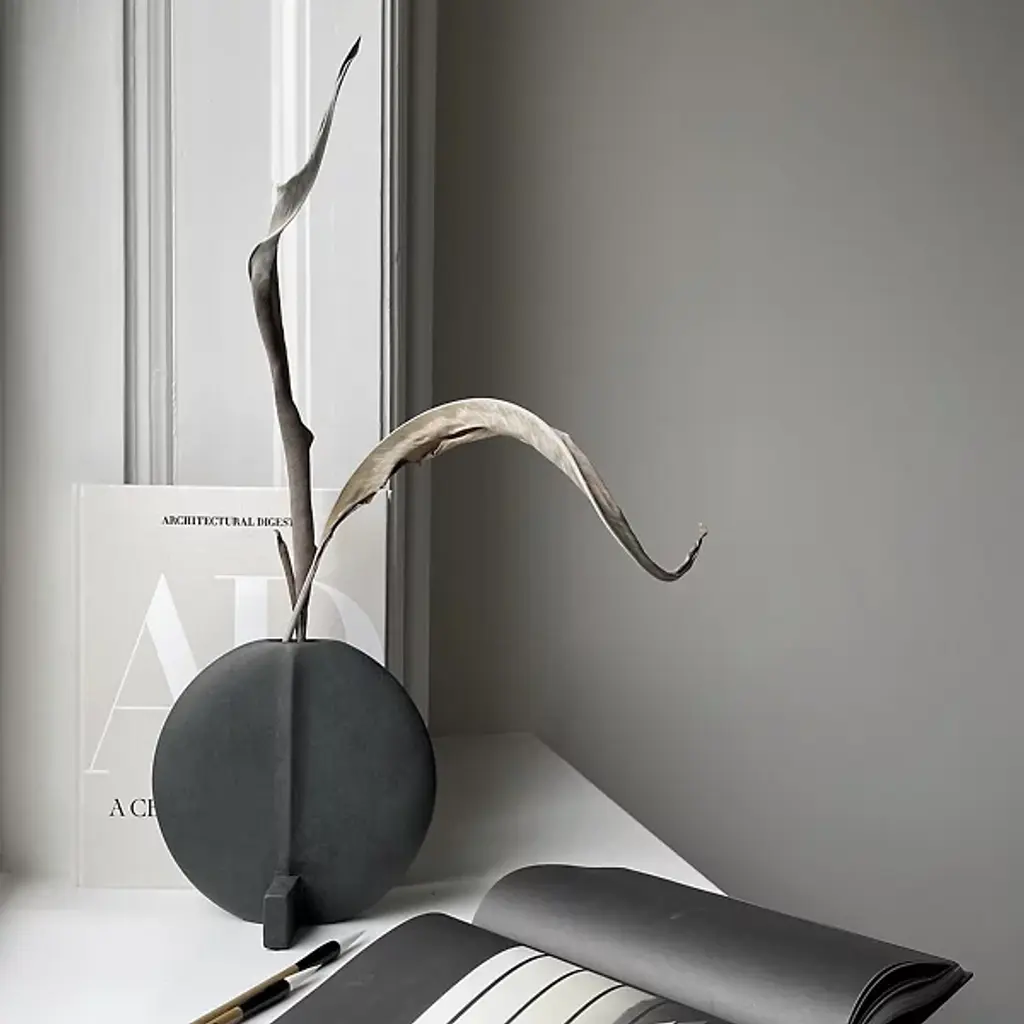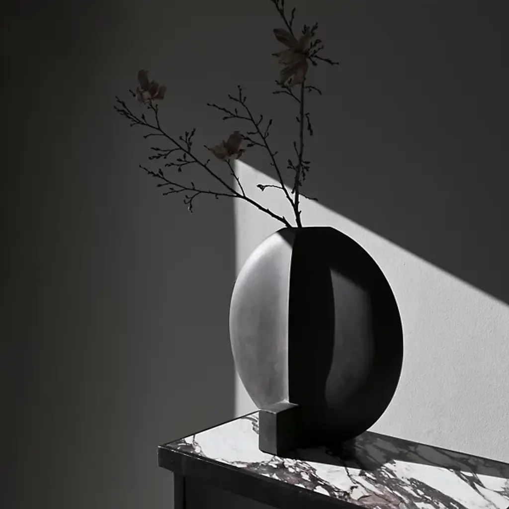 The Guggenheim Vase from 101 Copenhagen brings your space a striking blend of geometry and elegance. Designed by Kristian Sofus Hansen and Tommy Hyldahl, this ceramic piece features clean, angular lines that form a slender silhouette set atop a crossbar base, creating a captivating visual effect from every angle. Each vase is handcrafted with a unique, textured finish that beautifully interacts with light, making it a unique art piece that enhances any modern interior.