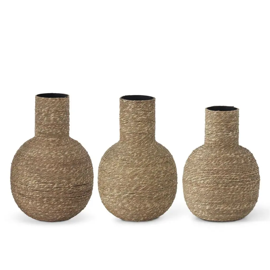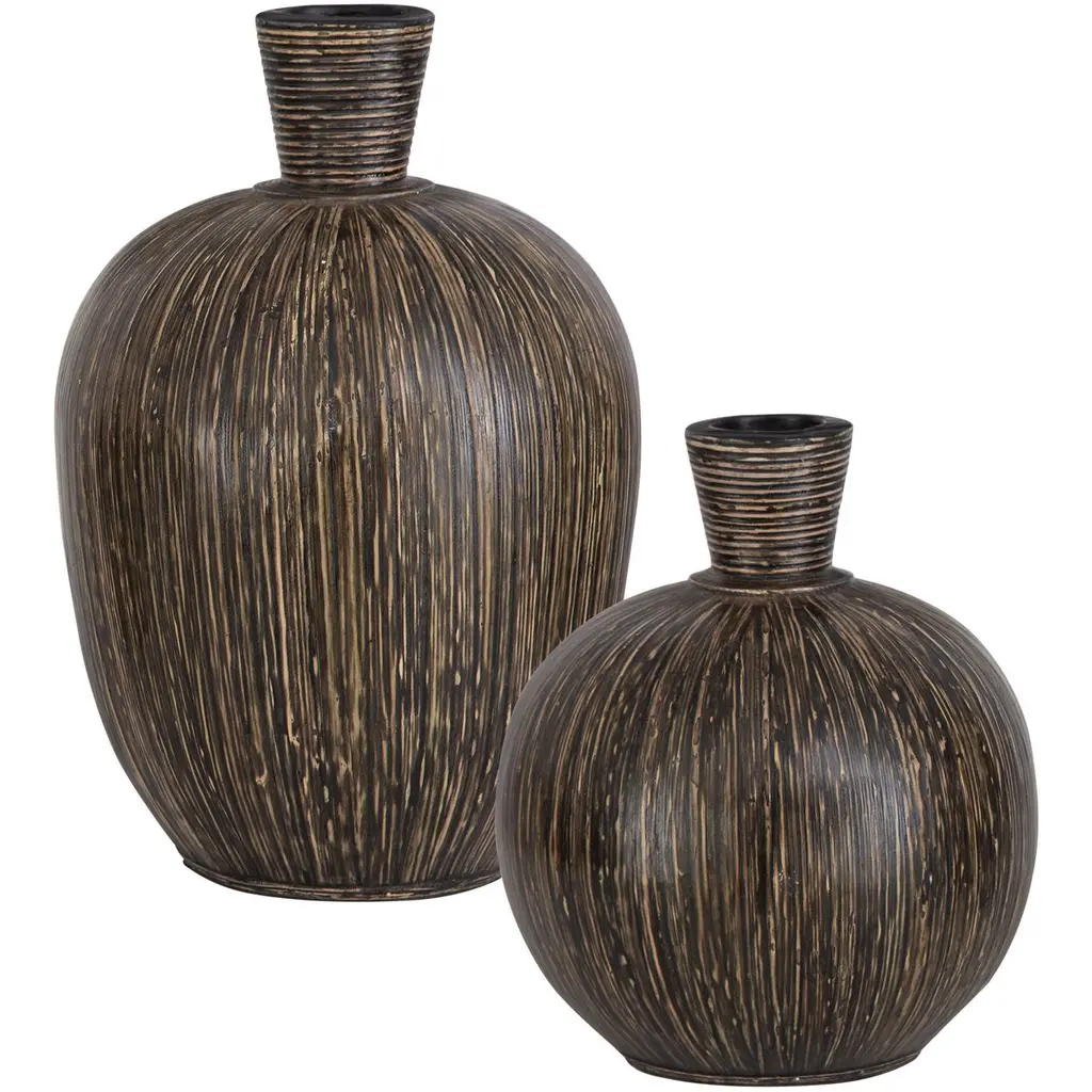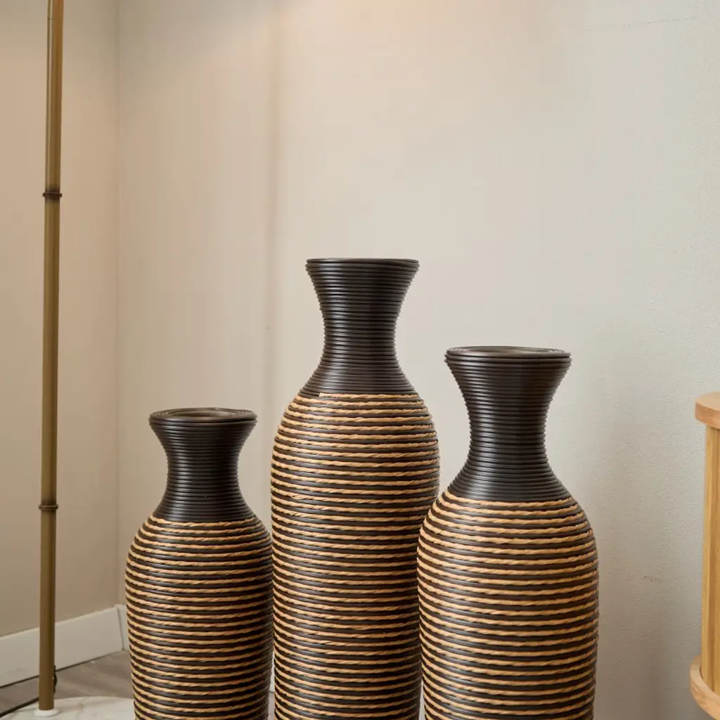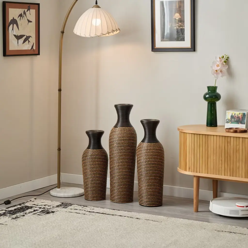 Gulches Set Of 3 Beige+black Decorative Floor Vases, Classic And Neat Floor Vases W/ High Flower Racks, Artificial Vine Vases, Home Decor