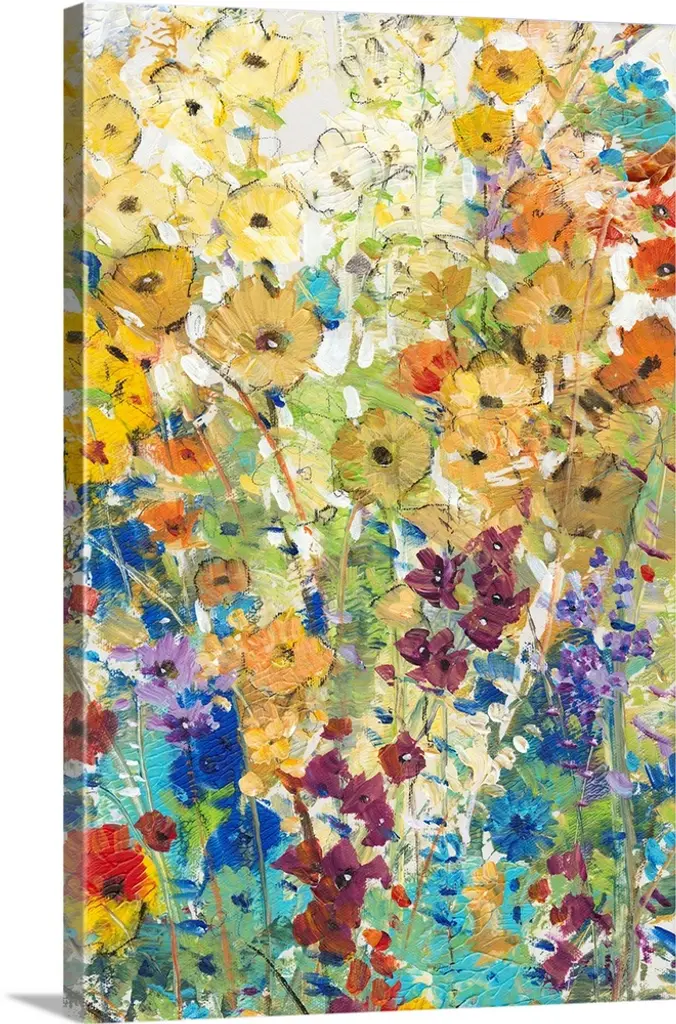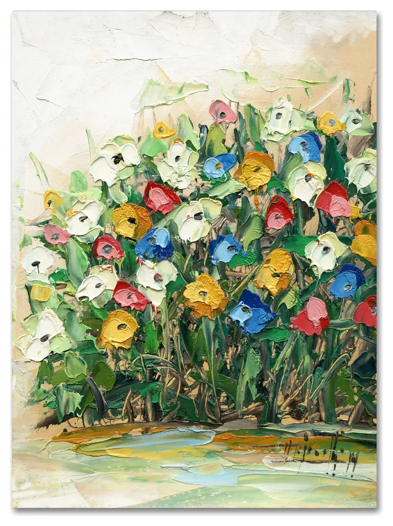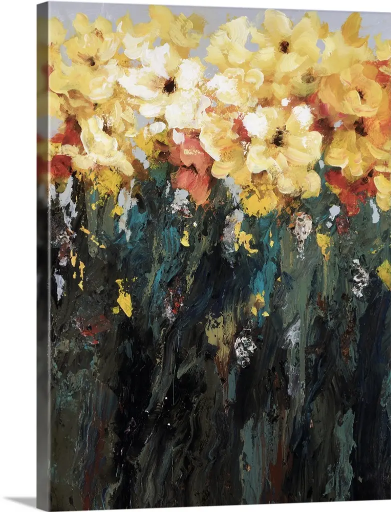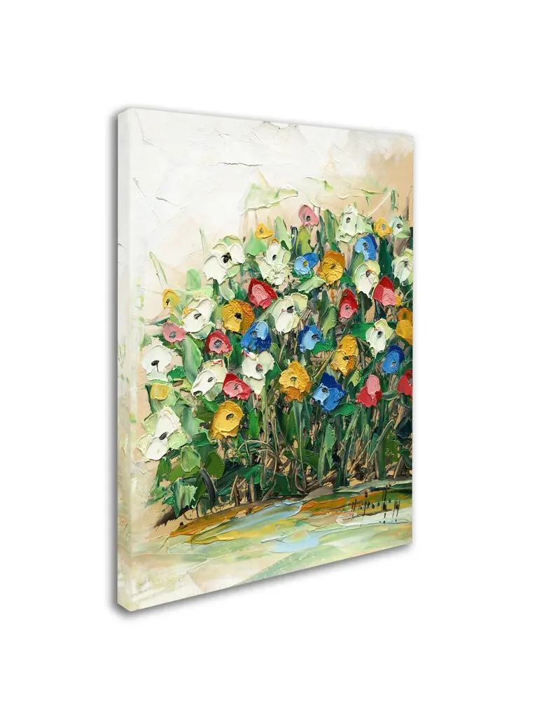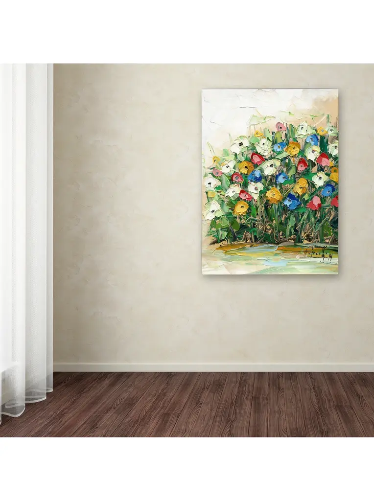 Artist: Masters Fine ArtSubject: Floral & BotanicalStyle: ContemporaryProduct Type: Gallery-Wrapped Canvas ArtMade in USAThis ready to hang, gallery-wrapped art piece features a painting of an arrangement of red, yellow, blue, and white flowers.Masters Fine Art is a company that travels around the world to bring the best in fine art from outstanding artists from different lands. They believe that art is the should of the world, that it represents our human essence. MFA works mostly with Latin American art. It portrays a happy view of life, represented with bright beautiful colors, music, dance, love, hope and happiness, giving us the feeling that we can overcome all hardships with all the beautiful things we still have in life. The art Masters FineArt carries is many things: colorful, contemporary, sexy, emotional, musical, romantic. Above all it is beautiful and full of joy.Giclee (jee-clay) is an advanced printmaking process for creating high quality fine art reproductions. The attainable excellence that Giclee printmaking affords makes the reproduction virtually indistinguishable from the original piece. The result is wide acceptance of Giclee by galleries, museums, and private collectors. Gallery wrap is a method of stretching an artist's canvas so that the canvas wraps around the sides and is secured a hidden, wooden frame. This method of stretching and preparing a canvas allows for a frameless presentation of the finished painting.