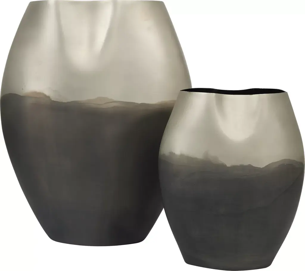 The perfectly imperfect shape of our Hakim vase creates an organic, hand-crafted feel that adds unexpected character to your console table or side table. Crafted of aluminum, this vase features a silver ombre finish that brings a modern touch to your space. This vase is available in two heights including an 11-inch and 16-inch size. Please select your size before adding to cart.