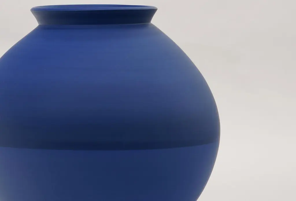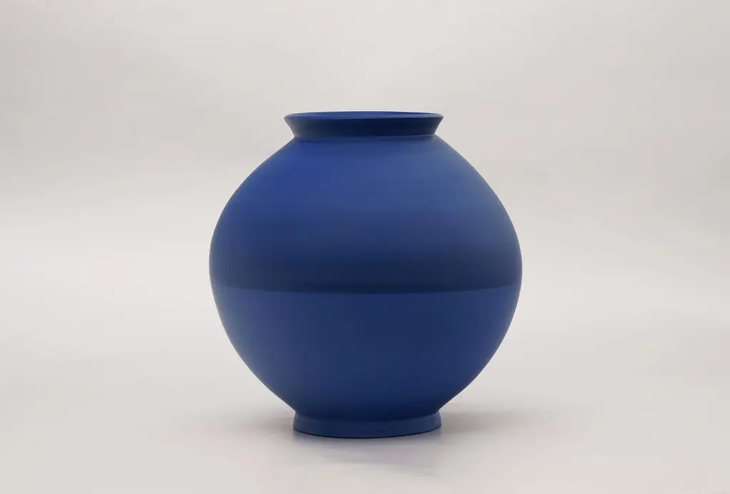 Half Half Vase by Jung HongUnique PieceDimensions: W 26 x D 26 x H 27.5 cmMaterials: Porcelain. I use the technique of 'sang-gam' (=inlay work) with my special tool, which I made myself, and create delicate and exact lines, which are all handmade, although they are often mistakenly considered manufactured. In the notched hollow lines, I delicately place the subtle different colors one by one, just as hyperrealist painters do. It took me about a year to get a detailed "moon" pattern on the porcelain "moon jar". I am a Berlin-based ceramic artist from Korea and these are very early works made in Berlin, Moon jar is a type of traditional Korean white porcelain which consists of two hemispherical halves that have been joined in the middle. With the skills that I have accumulated for 15 years in Korea and the new inspiration I gained from different environments and cultures in Berlin for a year, I was able to create new works passionately while challenging myself. My specialty is the use of porcelain with colors. I have tested the different combinations of color stains so that I could make special and unique color porcelain. These works are all made on the wheel in the traditional way and the porcelain fired at high temperature is vitrified and has a very solid and good coloration, which is enhanced by grinding and polishing the surface, and also the surface becomes silky smooth - like a marble stone - by this treatment.