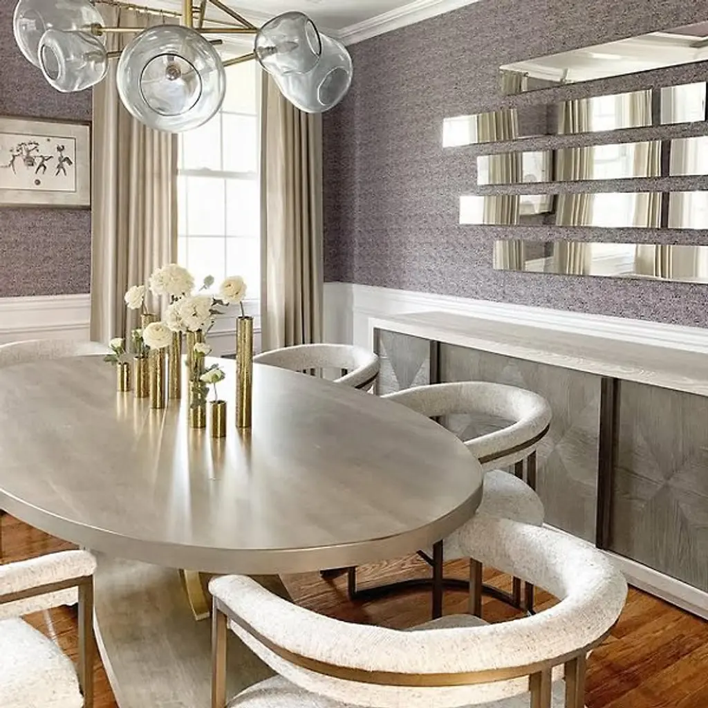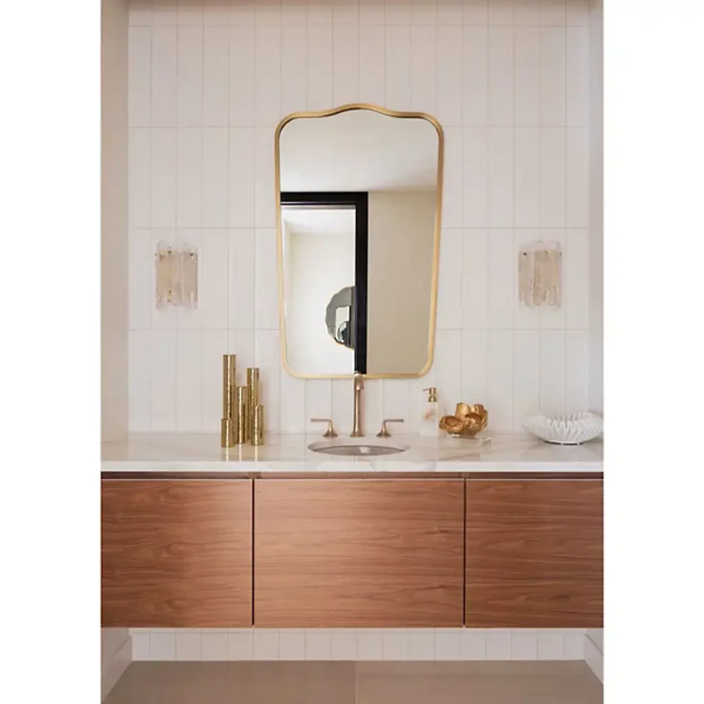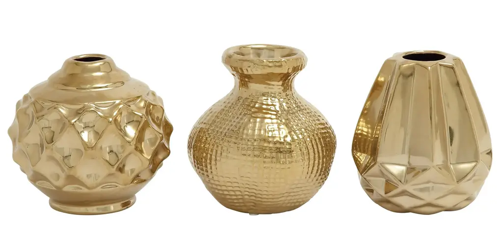 The Hammered Bud Vase Set from Regina Andrew shows off a layered arrangement of five cylindrical forms in varying heights. Each stainless steel vase is finished in a polished brass hue, with a hammered exterior that contrasts against its smooth interior. The open tops highlight stems or branches while allowing the pieces to stand as sculptural offerings on their own.