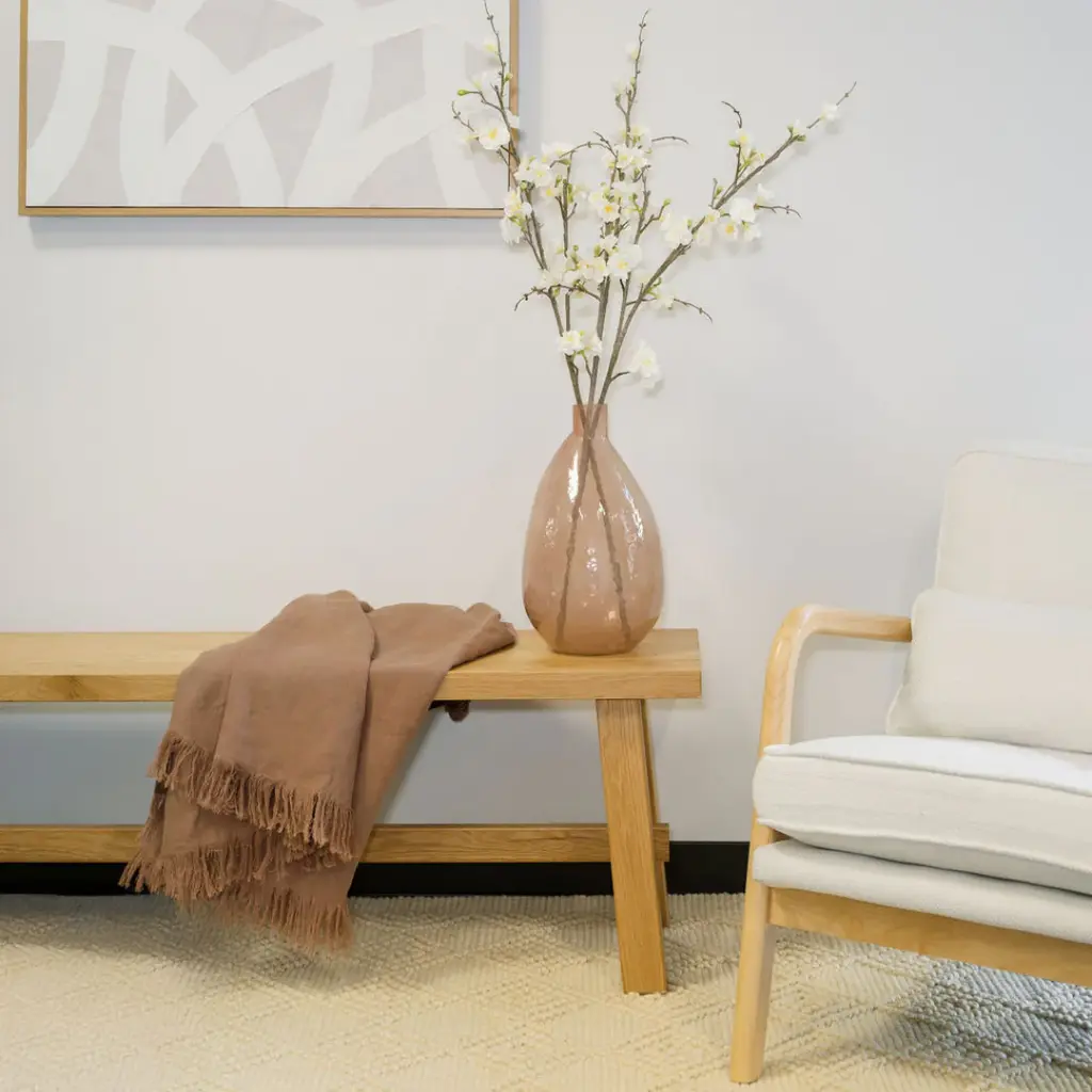 Expertly crafted in India, this stunning vase features a delicate peach hue and a unique hammered texture that beautifully reflects light. Perfect for fresh flowers, dried arrangements, or as a standalone decor piece, it brings warmth and sophistication to any room. With its timeless design and handcrafted quality, this vase complements a variety of interior styles, from modern to bohemian. Whether used as a centerpiece or an accent piece, it's a versatile addition to your decor or a thoughtful gift for any occasion. Bring home a piece of artistry with this exquisite glass vase. Elevate your home decor with the Handmade Hammered Glass Vase in Peach, a stunning piece expertly crafted in India. This exquisite vase showcases a delicate peach hue and a unique hammered texture that beautifully captures and reflects light, making it a perfect addition to any room. Ideal for fresh flowers, dried arrangements, or as a standalone decor accent, it adds warmth and sophistication to your space. Designed to complement a variety of interior styles -from modern to bohemian -this versatile vase serves as an eye-catching centerpiece or a charming accent piece. Its timeless design and handcrafted quality make it not only a beautiful decor item but also a thoughtful gift for any occasion. Bring home a piece of artistry and enhance your living space with the Handmade Hammered Glass Vase in Peach, a must-have for any home decor enthusiast.