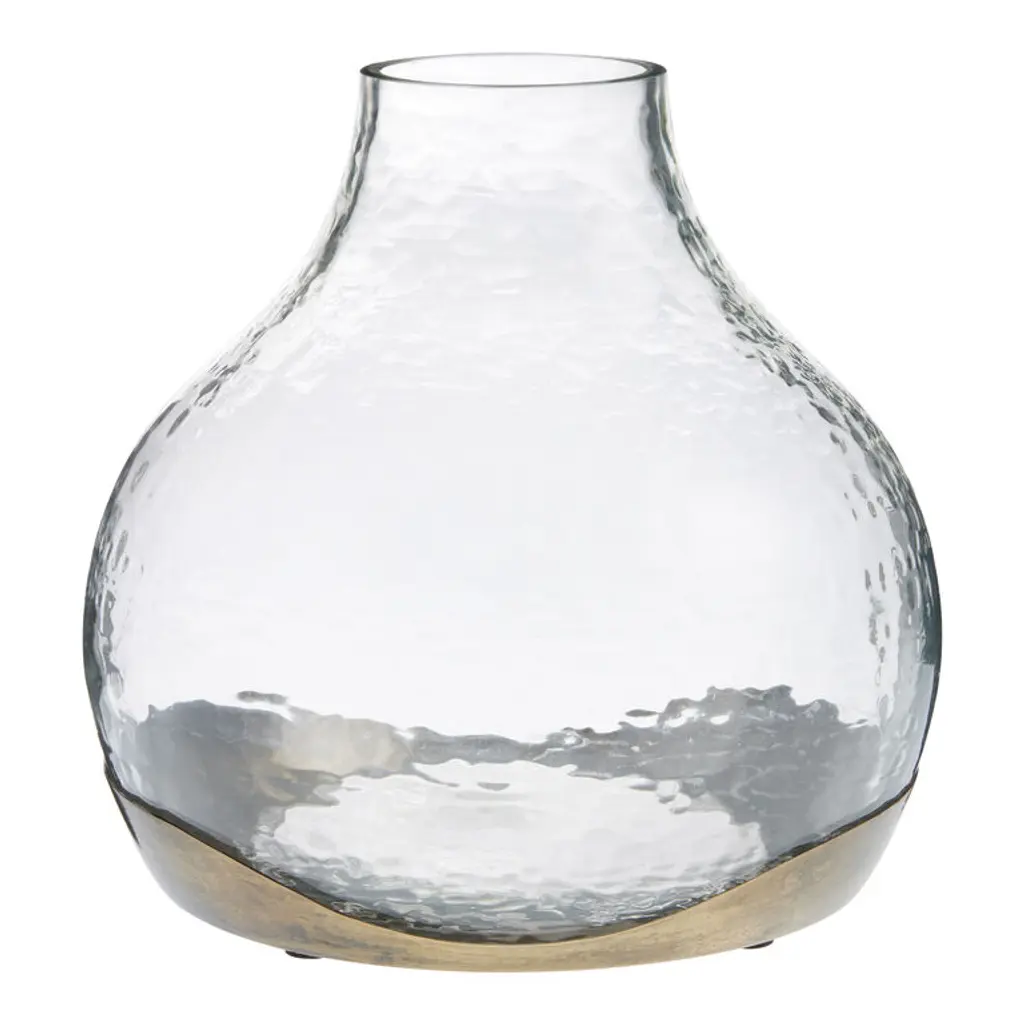 Serenely beautiful with a dash of vintage glam, our bulb-shaped vase is crafted of glass with an appealing hammered texture. Its antique-gold base is organically shaped and artfully burnished, creating an effect that's unique to each piece.