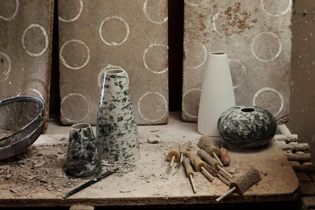 Slick additions, 1882 Ltd. Slick and sleet by 1882 Ltd. with an extended vase collection by Queensberry Hunt is a collection of uniquely hand glazed items – a true testament to the skill of the Potter. So many factors make up the pattern of the glaze; from the heat of the piece to the weight of the glaze. The Potter works each piece individually making each item unique. Glaze, like ceramic, has a mind of it’s own.