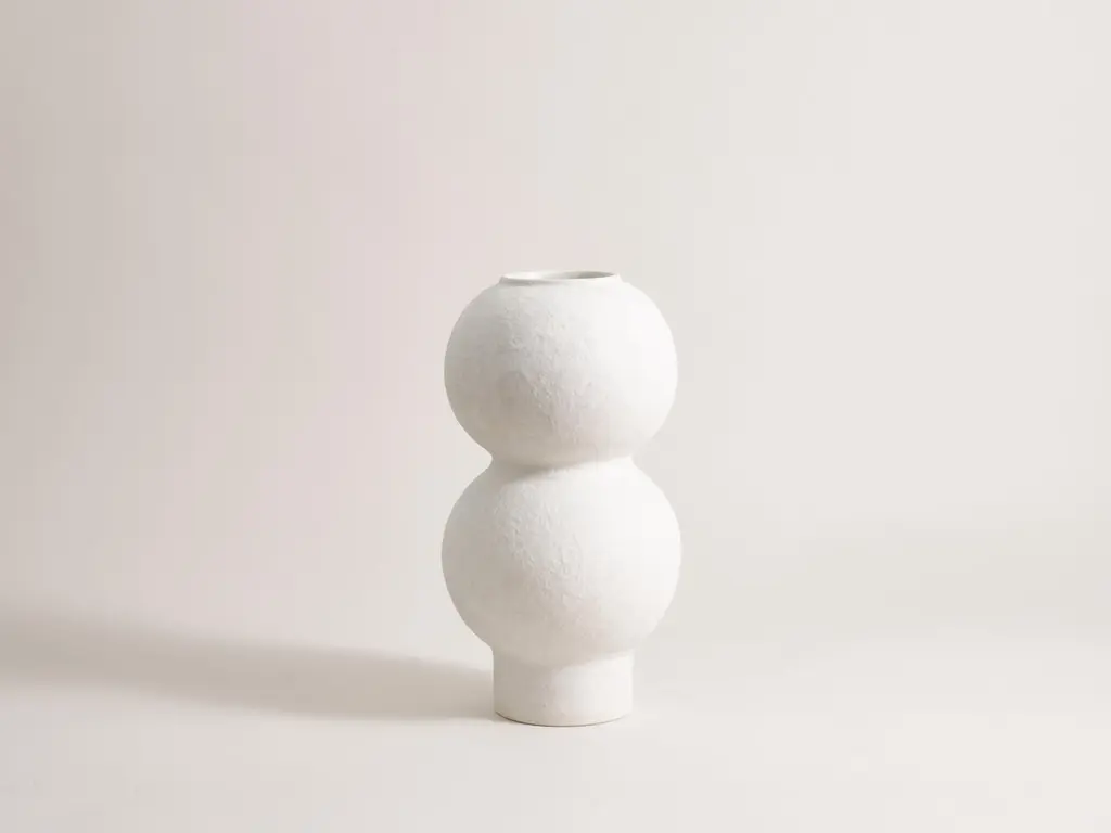 Handcrafted Vase 075 by Lovebuch.Dimensions: Ø 15 x H 28 cm.Materials: Sandstone, porcelain, handcrafted piece.Katia works with wood and clay, these raw, powerfully expressive materials are shaped to create a poetry of objects that inhabit our daily lives. Sculptural ceramics are also functional, they are made of stoneware modeled and turned in an artisanal way. Cooking them at 1250 ° C gives them resistance and permanence that has become rare.In the Lovebuch series (2015-2019) extracts from trees chosen from the Jurassian forest are cut, dried and polished at length. Their primitive, massive and organic presence is adorned with delicate paintings around a heart that has grown over time.
