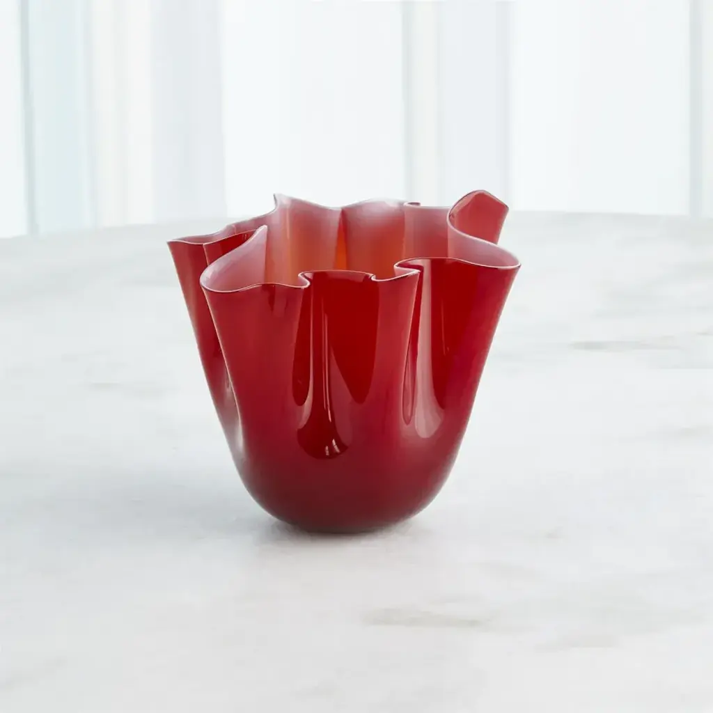 Italian artisans craft the Handkerchief Vases by hand forming each edge of the cased glass using pinchers to create the unique silhouettes. Available in two sizes. From a fashion forward perspective, Global Views offers accessories, furniture, statement lighting, and an assortment of rugs and mirrors to add beauty and joy to your home.