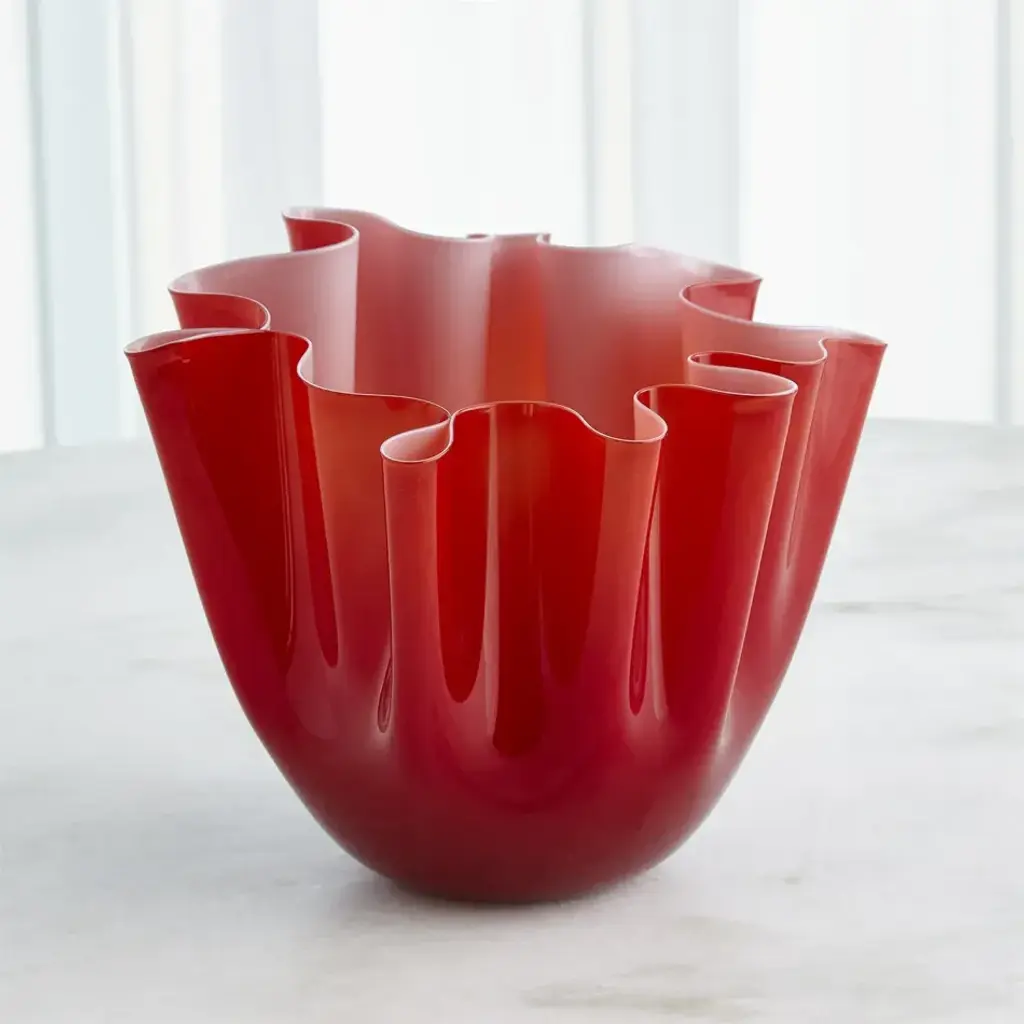 Italian artisans craft the Handkerchief Vases by hand forming each edge of the cased glass using pinchers to create the unique silhouettes. Available in two sizes. From a fashion forward perspective, Global Views offers accessories, furniture, statement lighting, and an assortment of rugs and mirrors to add beauty and joy to your home.