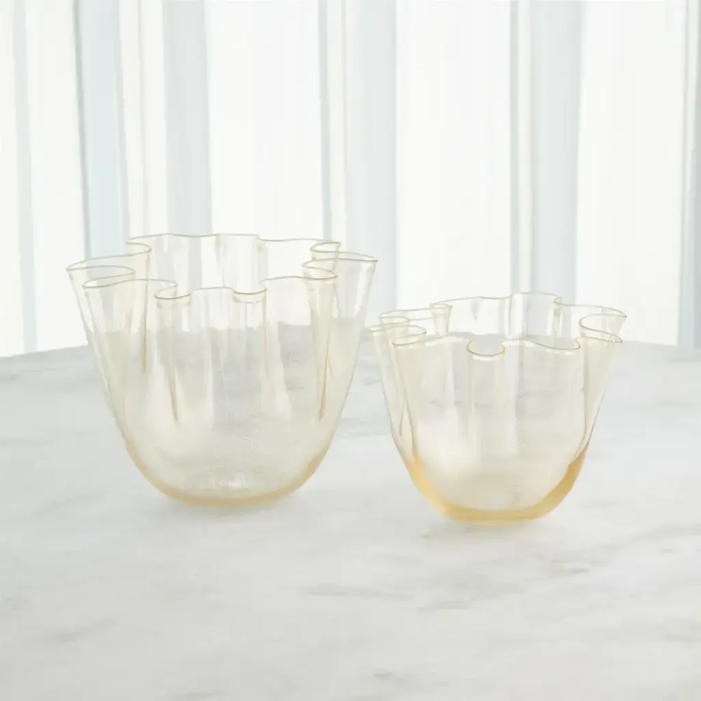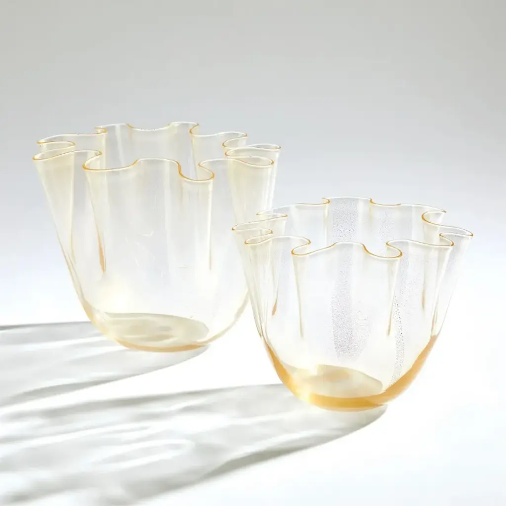 Italian artisans craft the Handkerchief Vases by hand forming each edge of the cased glass using pinchers to create the unique silhouettes. Available in two sizes. From a fashion forward perspective, Global Views offers accessories, furniture, statement lighting, and an assortment of rugs and mirrors to add beauty and joy to your home.