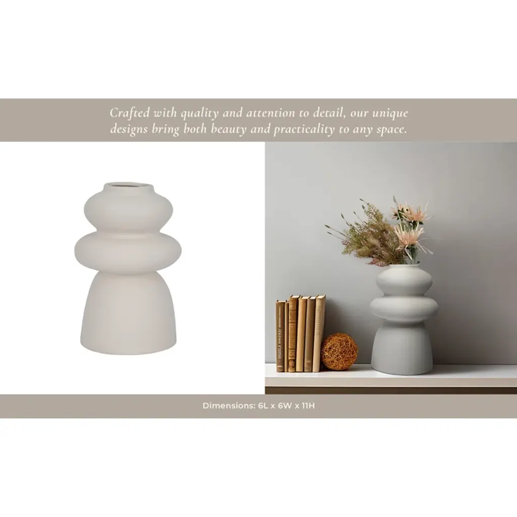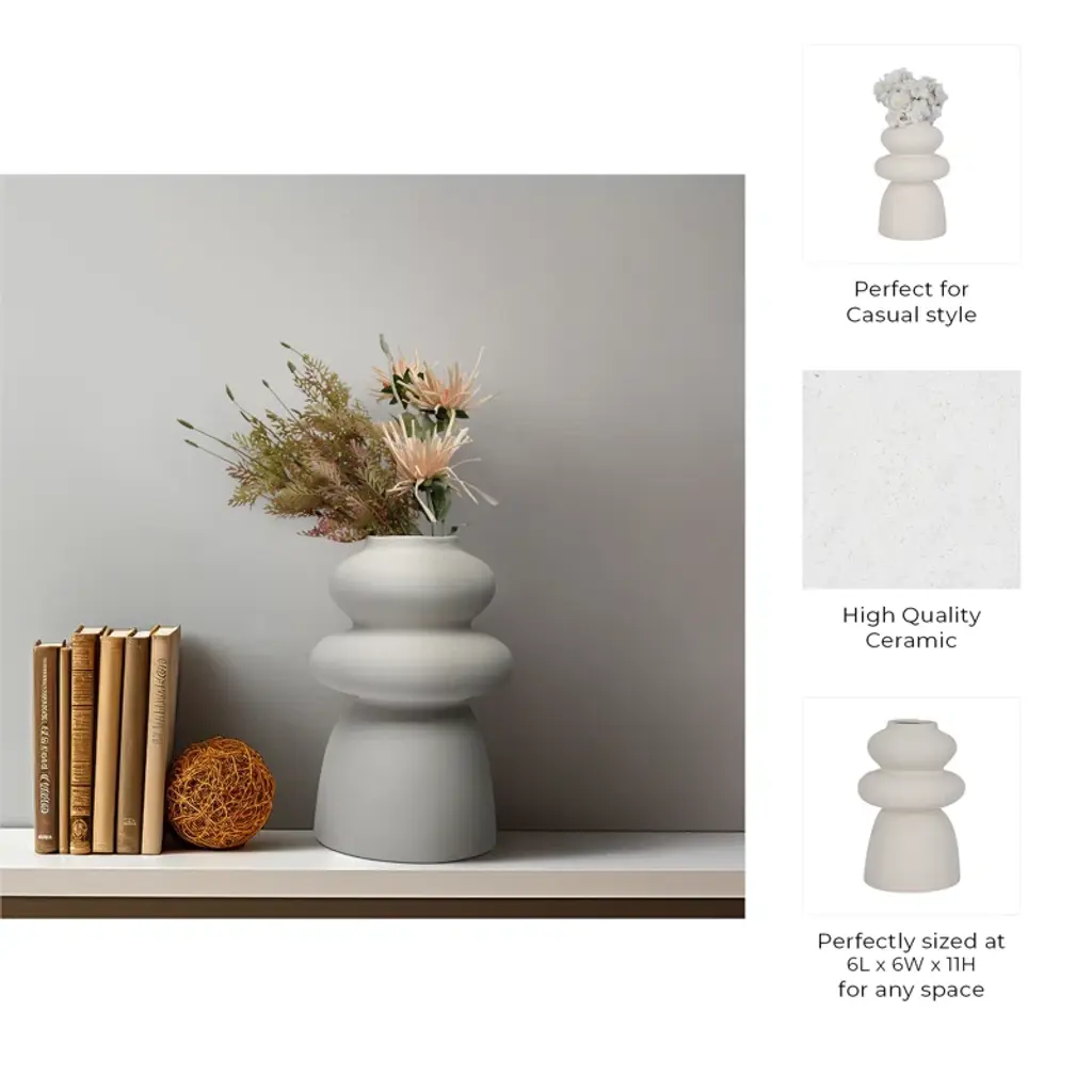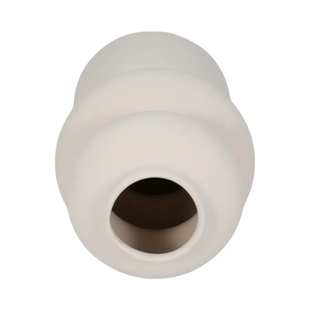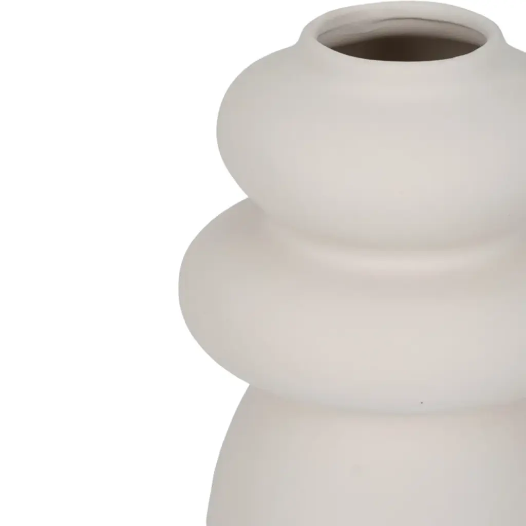 Sculptural statement. This handcrafted ceramic table vase elevates the art of minimalist decor. Its abstract silhouette and textured ivory finish create a look that’s both organic + refined. Display it on its own as a work of art or pair it with dried botanicals for a touch of understated elegance.