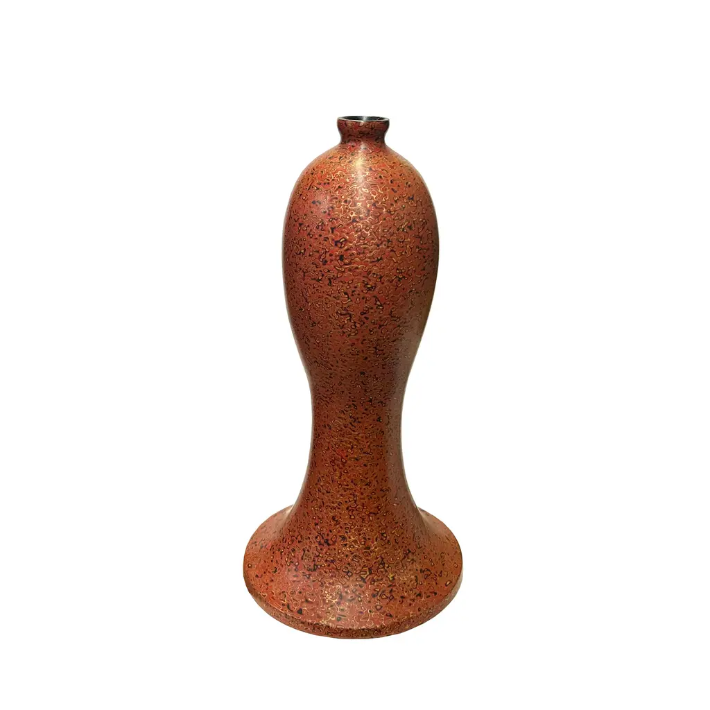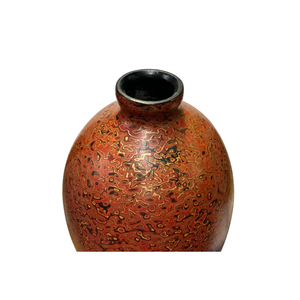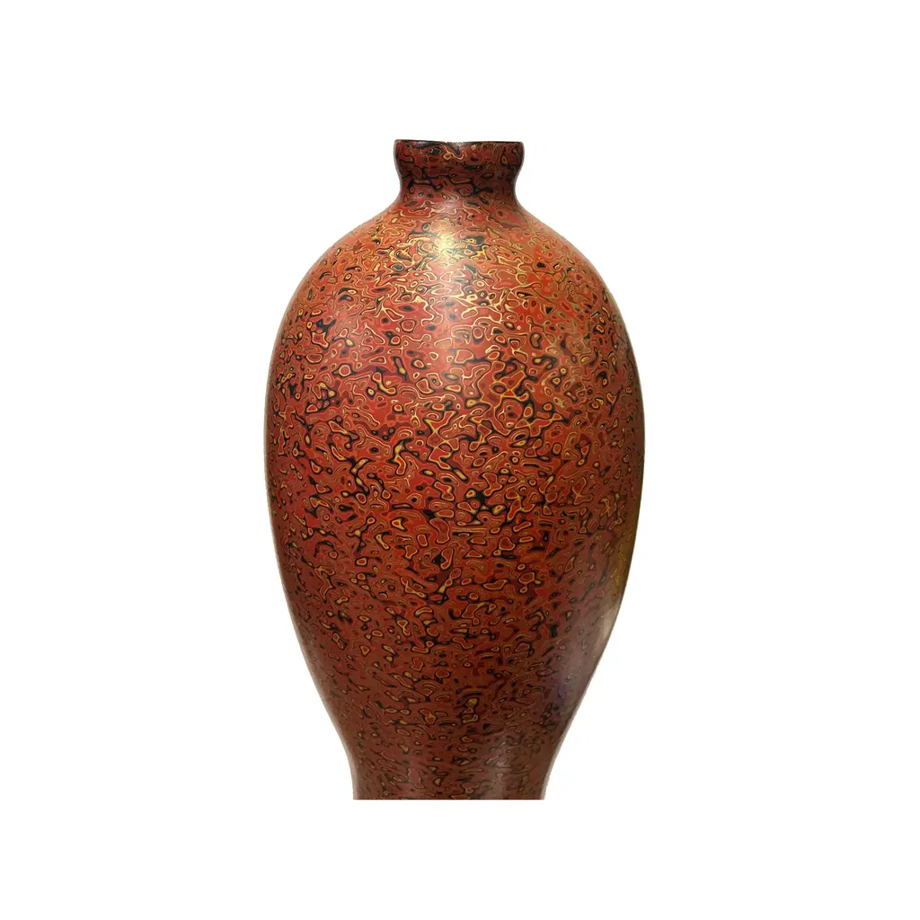 Handmade Orange Multi-Layer Lacquer Abstract Pattern Wood Vase Display