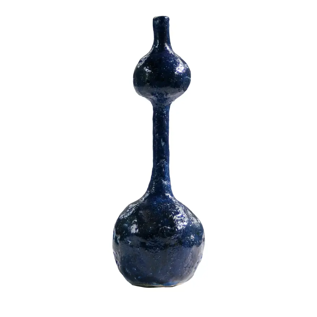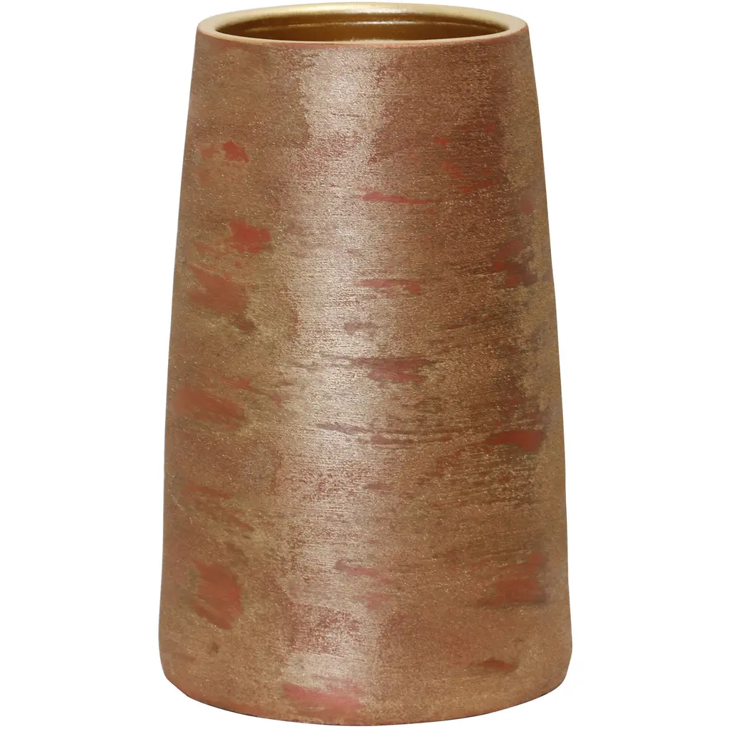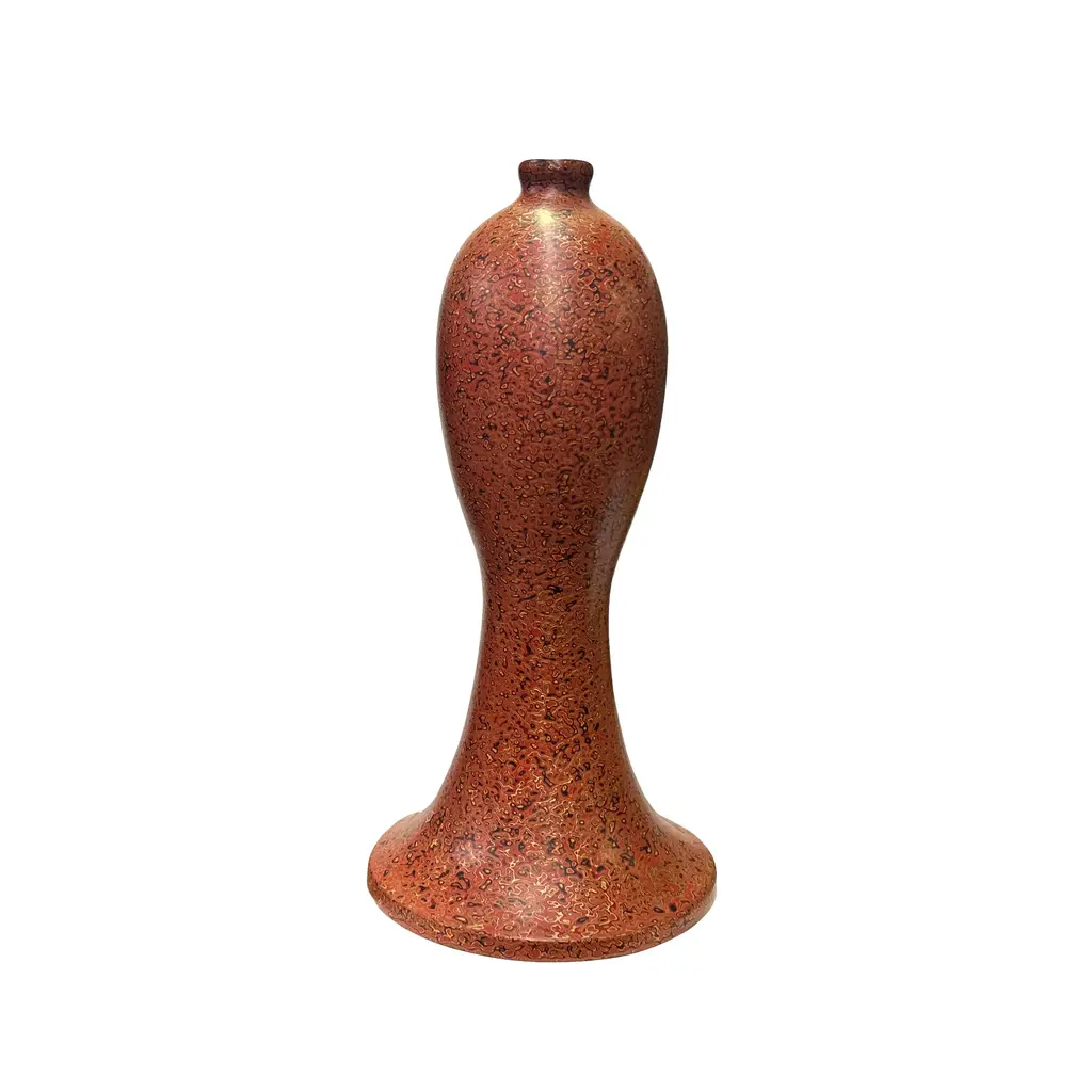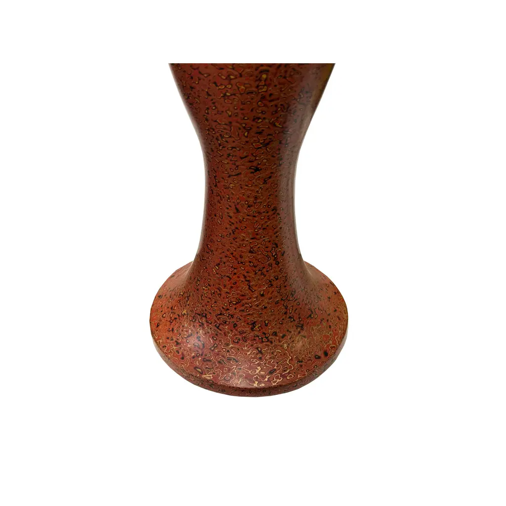 This striking Handmade Orange Gold Black Mix Multi-Layer Lacquer Abstract Pattern Wood Vase Display is a testament to artisanal craftsmanship and artistic ingenuity. Skillfully crafted from wood, this vase boasts a unique multi-layer lacquer finish that combines vibrant hues of orange, gold, and black, creating a mesmerizing abstract pattern that draws the eye in. Standing as a captivating piece of decor, this vase is designed with multiple layers of lacquer, meticulously applied to achieve a stunning depth of color and texture. The interplay of light and shadow on its surface adds an extra dimension to its allure, making it a focal point in any room. Its sleek and contemporary silhouette adds a modern touch to any space, while its organic material and handcrafted design offer a sense of warmth and authenticity. Whether displayed as a standalone piece or adorned with fresh blooms or dried branches, this wood vase promises to elevate the ambiance of any interior setting with its sophisticated elegance and artistic flair. Dimensions: Dia 10.75" x h22" Origin: China Material: Wood Condition: Handmade, variation in the detail, minor chip marks