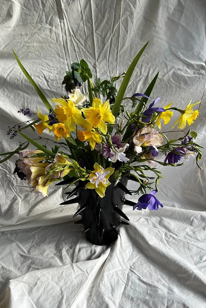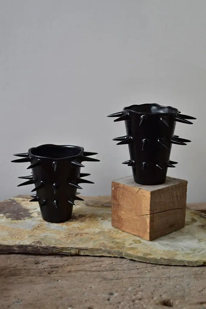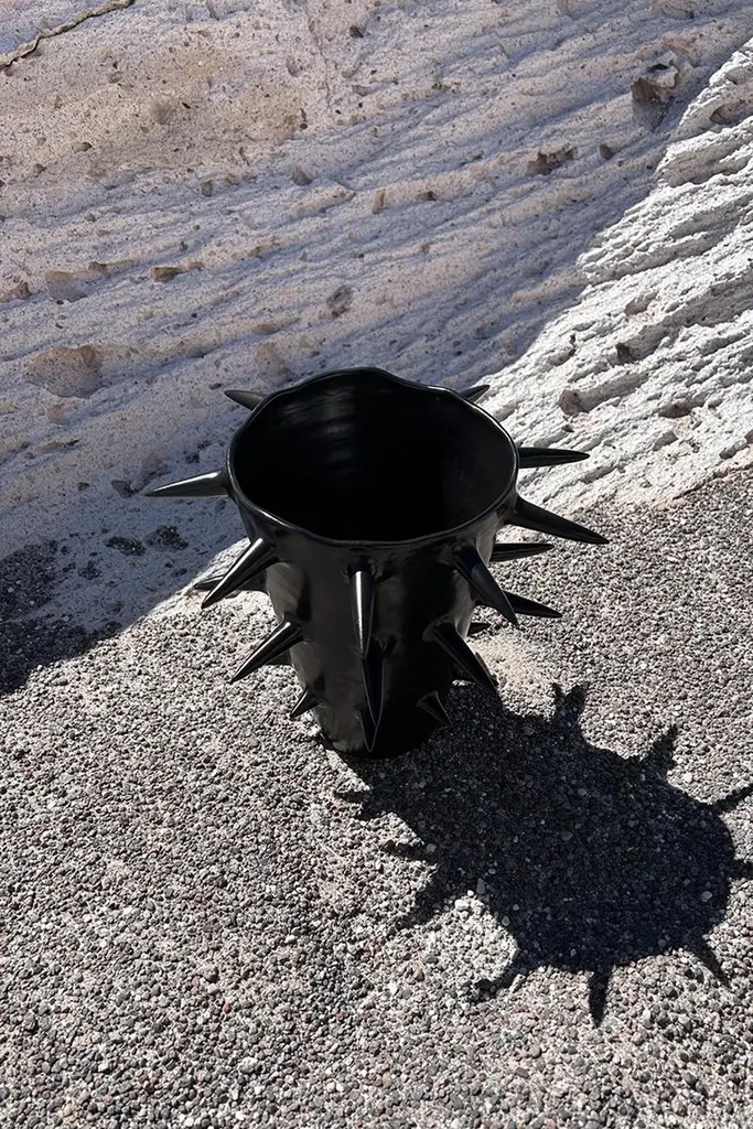 Beautiful black decorative vase with spikes, perfect for showcasing your cherished blooms. Providing a unique perspective from every angle, this handmade ceramic vase blurs the line between functionality and ornament. Use it either as a fully functional flower vase or as a decorative sculpture to elevate your home's ambiance.Carefully crafted, each vessel is thrown and trimmed on the wheel, and every outer spike is individually attached by hand. Finished with a hand-applied satin black glaze.Due to its handcrafted nature, each black pottery vase is a completely one-of-a-kind, original artwork.✺ Dimensions20cm. (H) and 27cm. (W) / 7.87" (H) and 10.62" (W)✺ Custom sizeThe vase size is totally customizable. Just share the measurements you'd like, and we'll create it accordingly.✺ Handmade and one-of-a-kindBecause every spikes vase is made by hand, variation in size and shape are to be expected. Handmade in Buenos Aires, Argentina