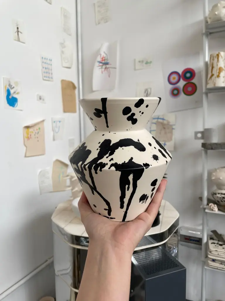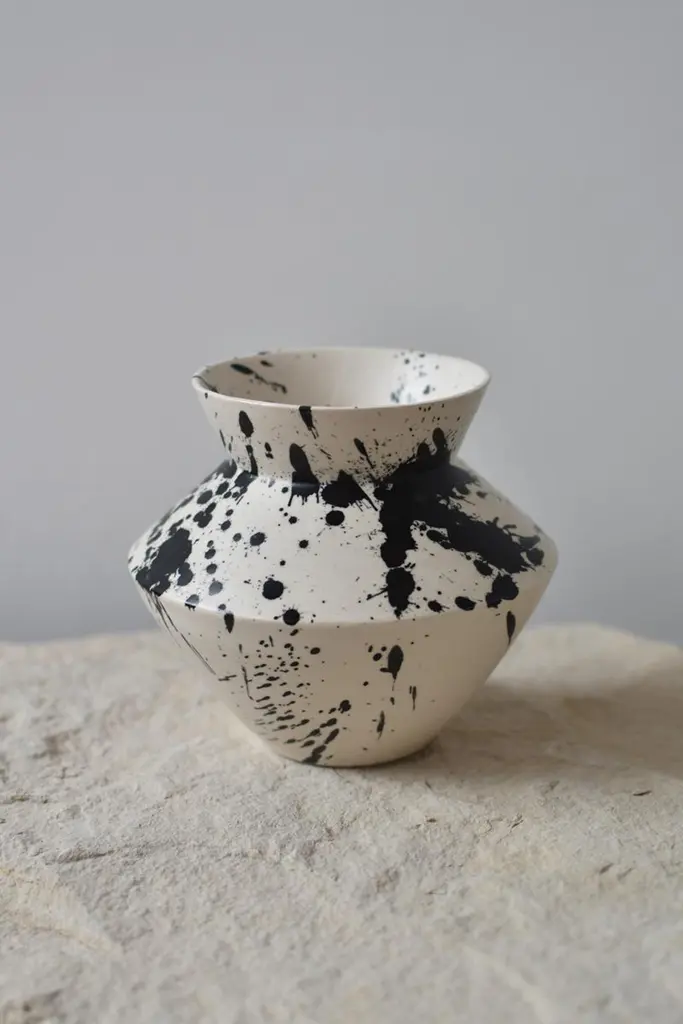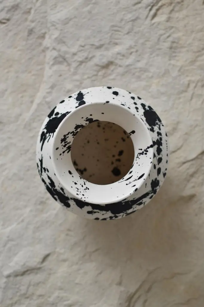 Beautiful decorative ceramic vase, perfect for displaying your favorite blooms. With its simple lines and contemporary aesthetics, this handmade pottery vase crosses the line between functionality and ornament. Use it either as a fully functional flower vase or as a decorative sculpture to elevate your home's ambiance.All vases are individually thrown and trimmed on the wheel, glazed by hand in a matte glaze, and each splatter and brushstroke is hand-painted so that no two pieces are alike. A sculpture in itself, this unique ceramic vase makes a great gift for any art lover.✺ Dimensions15cm. (H) and 18cm. (W) / 5.90" (W) and 7.08" (H)✺ Custom size and/or colorTailor the vase to your liking! Simply let us know the measurements or color you have in mind, and we'll create it accordingly.✺ Handmade and one-of-a-kindBecause of the handmade nature of this product, each decorative flower vase is unique and may have some slight variation in size and form from piece to piece. Handmade in Buenos Aires, Argentina