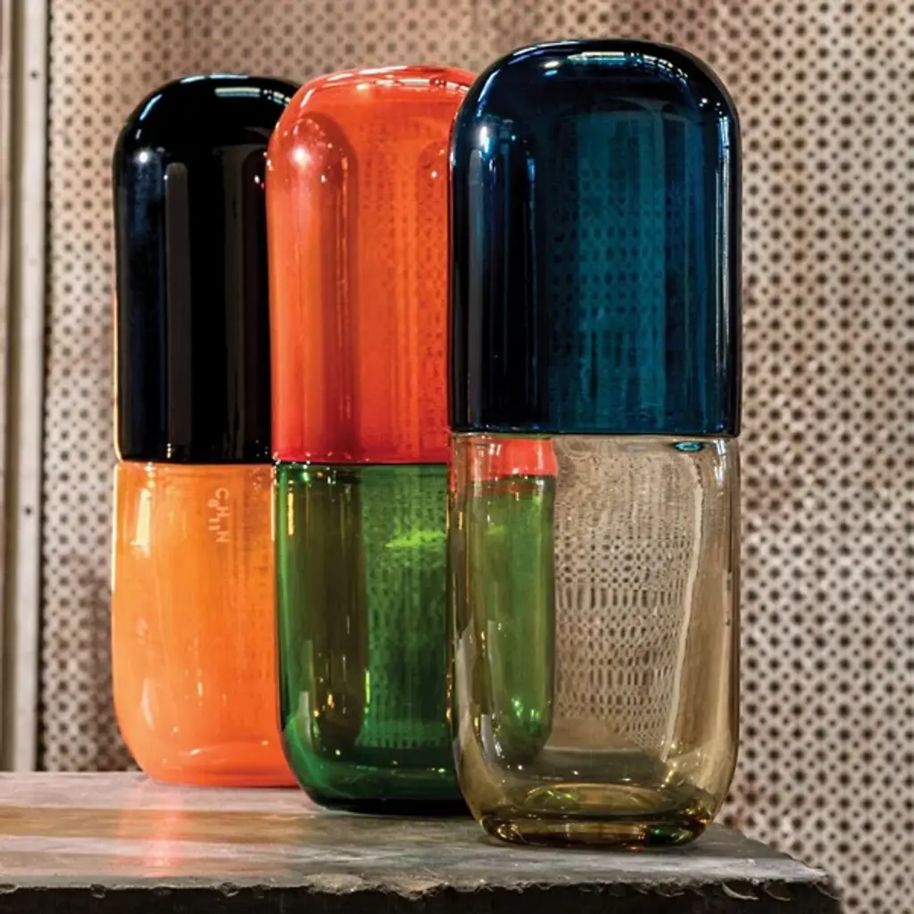 The Happy Pills Vase from Venini reimagines pharmaceutical forms through Murano glasswork. Designed by Fabio Novembre in 2012, this playful piece challenges conventional vase designs with its capsule-inspired shape. Italian artisans craft each piece as a material antidote to mundane decor, intended to spark joy rather than serve purely practical purposes. The vase makes an unexpected statement on kitchen islands, floating shelves, or bedside tables, offering a dose of artistic wit to any space.