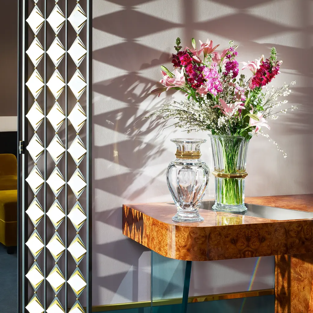 Showcase fresh flowers and other botanicals in Baccarat's gracefully curved crystal vase. Dozens of flat cuts artfully reflect light for a dazzling visual effect.