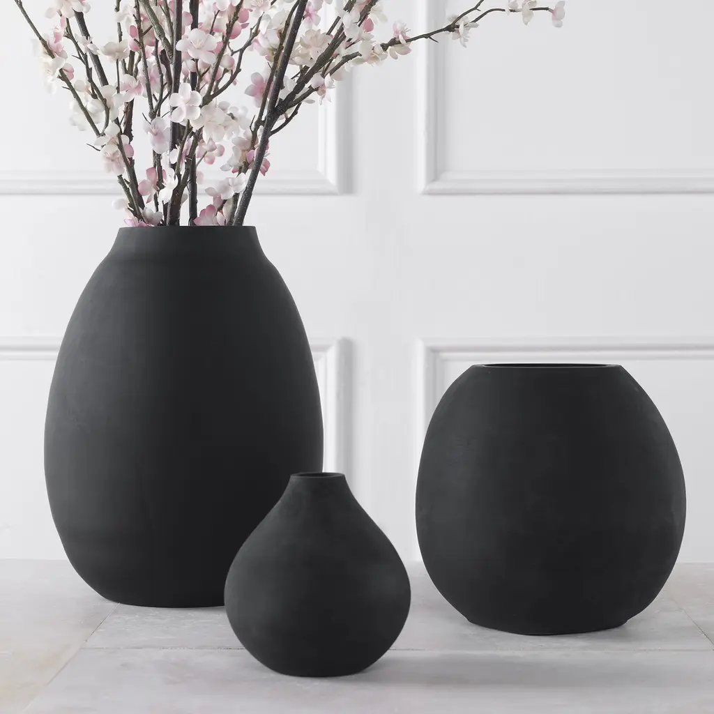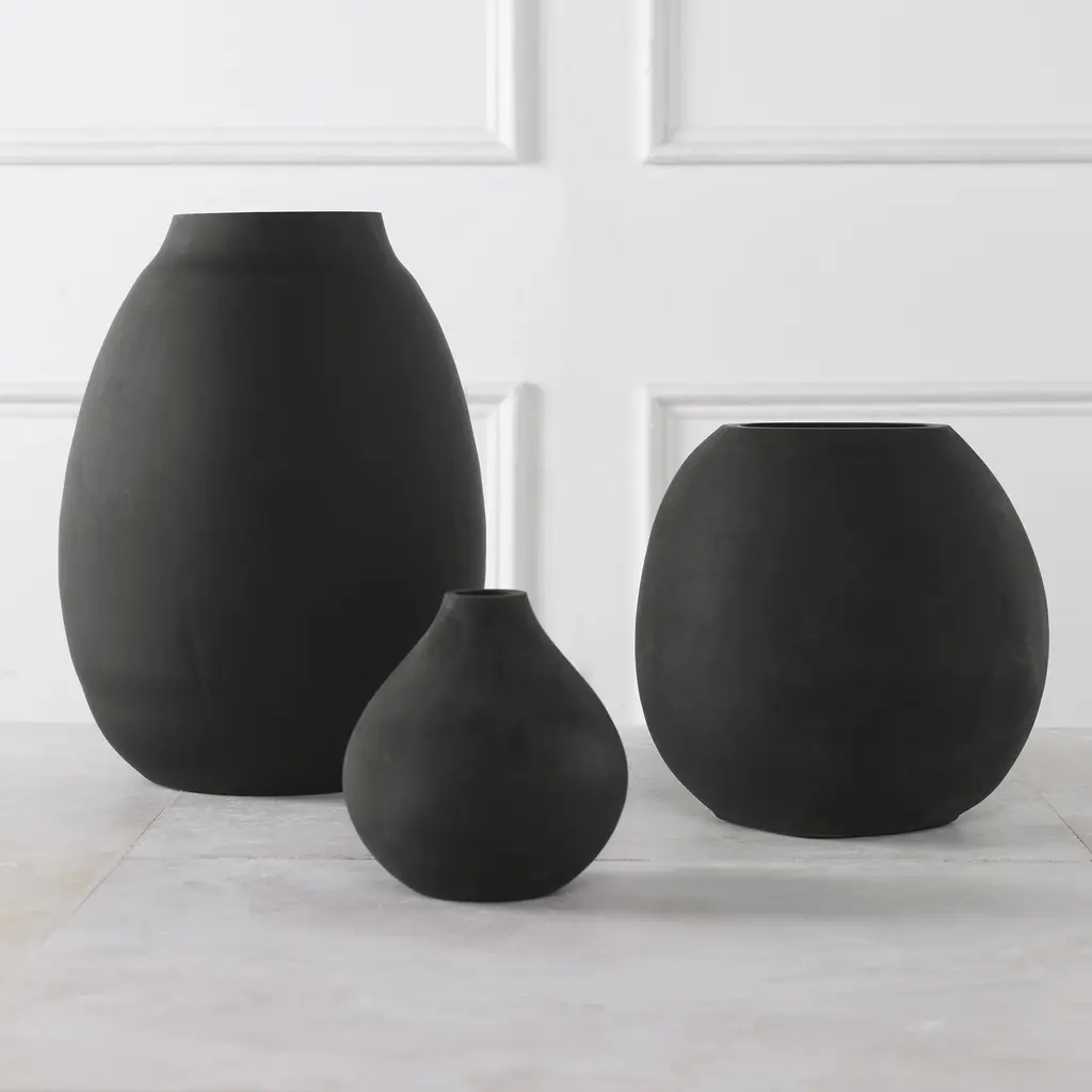 Cozy Additions To Any Space, The Hearth Vases Are Crafted From Black Glass With A Matte Finish. Sizes: S-5x5x5, M-8x8x8, L-9x13x9