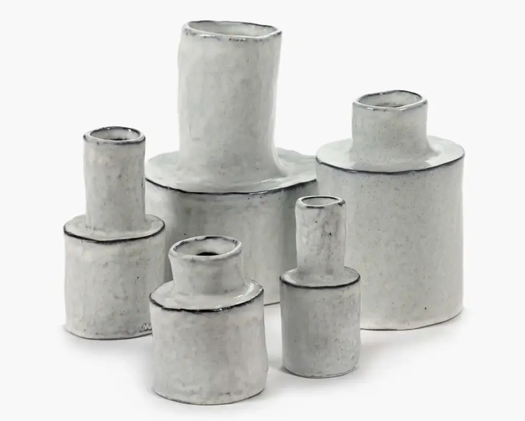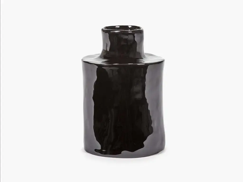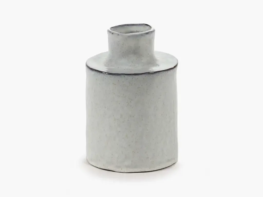 Héléna Marie is a round vase made of stoneware.These black Héléna vases were crafted with artisanal attention to detail, which is why they have such an unusual cylindrical shape. Whether with or without flowers, their distinctive design adds a nice decorative flourish to any home.These off-white Héléna vases, with their simple cylindrical shape and irregular contours, tick all the boxes of an authentic hand-made product. They add a nice decorative touch to your home, both with or without flowers.Eclectic, a world full of wonderful extremes based on a well-thought-out structure. That is the first thing that comes to mind for the accessories collection of Marie Michielssen. Serax ’s resident designer likes variety, both in style and in her use of materials and colours. From papier-mâché through concrete to porcelain, cheerfully coloured or in muted natural colours, inspired by constructivism or by the earth in its most rudimentary form, each collection is completely different.
