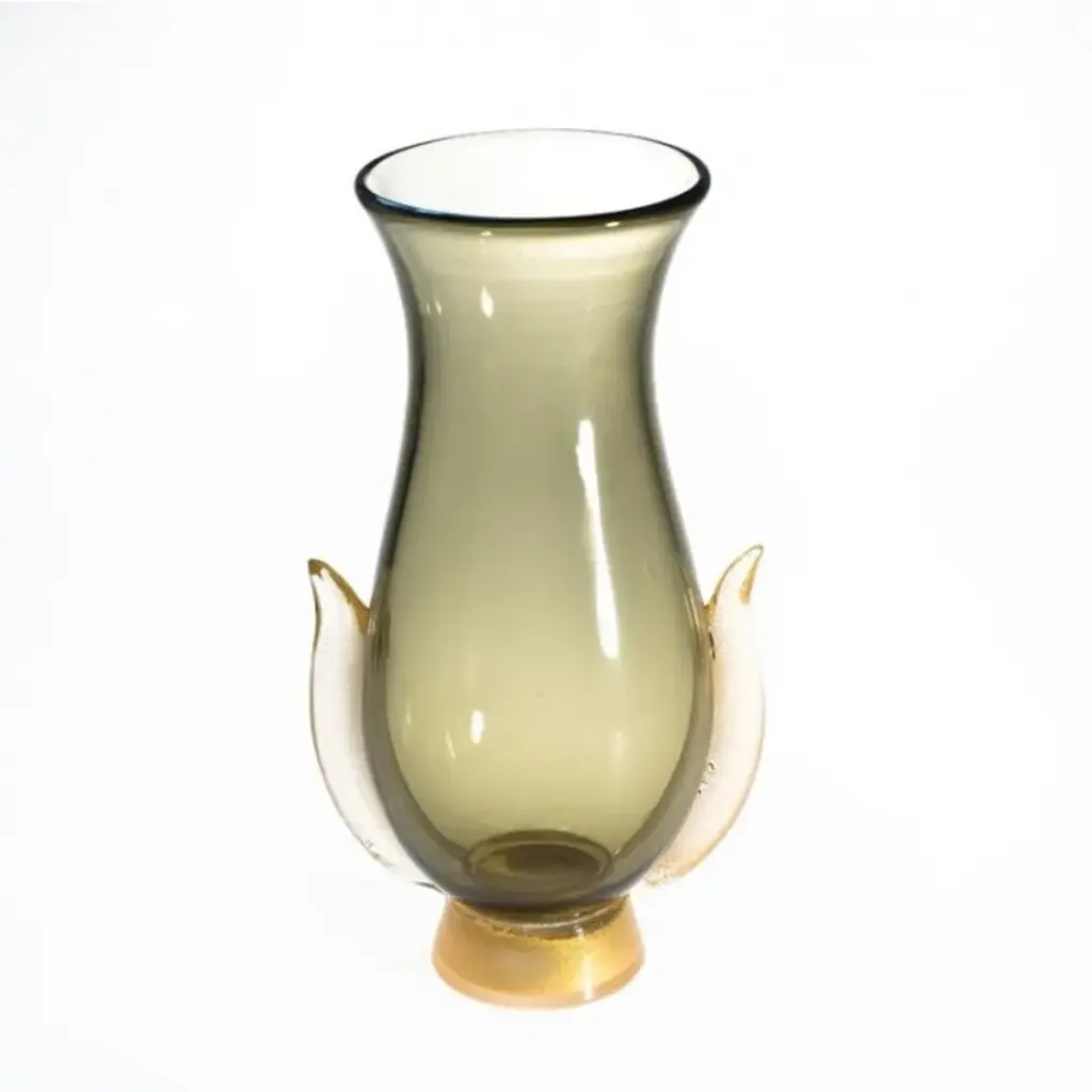 HELIOS is a Murano glass vase with an amphora shape and pure gold leaf decorated handles. Imagine this artwork as the focus point of your favourite room.Simplicity and elegance are the two key characteristics of our classic glass vases. They draw inspiration from Italian artistic heritage and ancient Roman and Greek vases, but they reinterpret these traditional models and shapes in a modern and innovative way. All YourMurano products are artisanal and of the highest production quality. Non-substantial variations in shape, size, color, and/or minor imperfections are inevitable and are typical of manual glasswork, highlighting the artisanal craftsmanship.