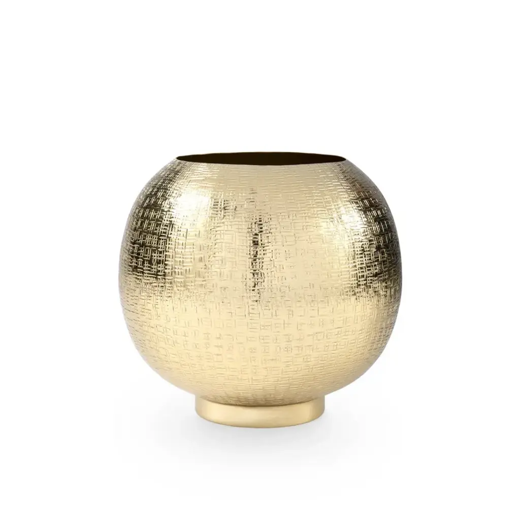 The organic, hemp-like texture of these watertight vases is hand-etched into an aluminum sheet, forming the body of the brass finished vases. From a fashion forward perspective, Global Views offers accessories, furniture, statement lighting, and an assortment of rugs and mirrors to add beauty and joy to your home.