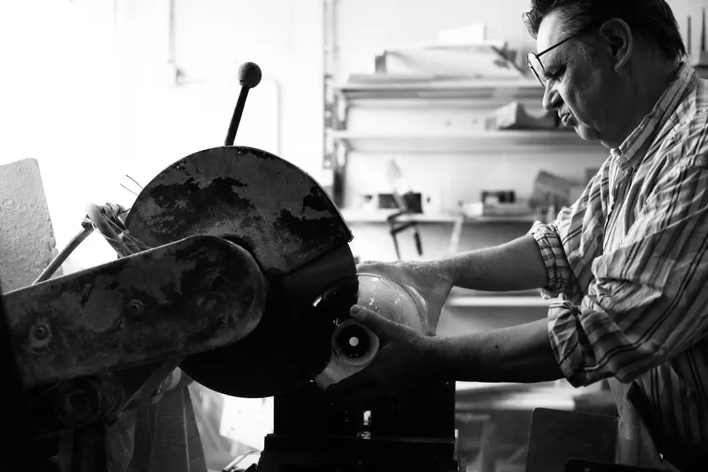 The collection of Rotterdam based designer Selma Hamstra was launched during Milan Design Week 2021. 'Her Masters Voice' collection contains glass designs that are created to question the craft. Searching for a balance between the skills of a master glassblower and their apprentice. The collection is made up of objects that invite viewers to examine craft and the meaning of mastership. Providing a stage to let questions arise; do you see the qualities of the master and how do we value the imperfections from the learning hand of a young craftsman? What does it mean to be a master? Is the quality of education good enough to become a master?The vase is designed to emphasise the fine balance in skills, to be a center piece in a space - with or without a clear function.Master glassblower: Gert BulléeYoung glassblower: Selma HamstraCold worker: Albert SeubringAbout the designer:Studio Selma Hamstra explores the fields of craft and design. She aims to contribute to the revaluation of the crafts culture. She is setting up her own 'hotshop' for the experiments of artists and designers. Perhaps asking questions about the meaning of craft and mastery, is the most important aspect of her practice.Please note that the collection is handmade and invites you to think about the meaning of craft and it's mastership. In this collection you will find components made by a master and made by a young glassblower. Therefore you will see a difference in skills.