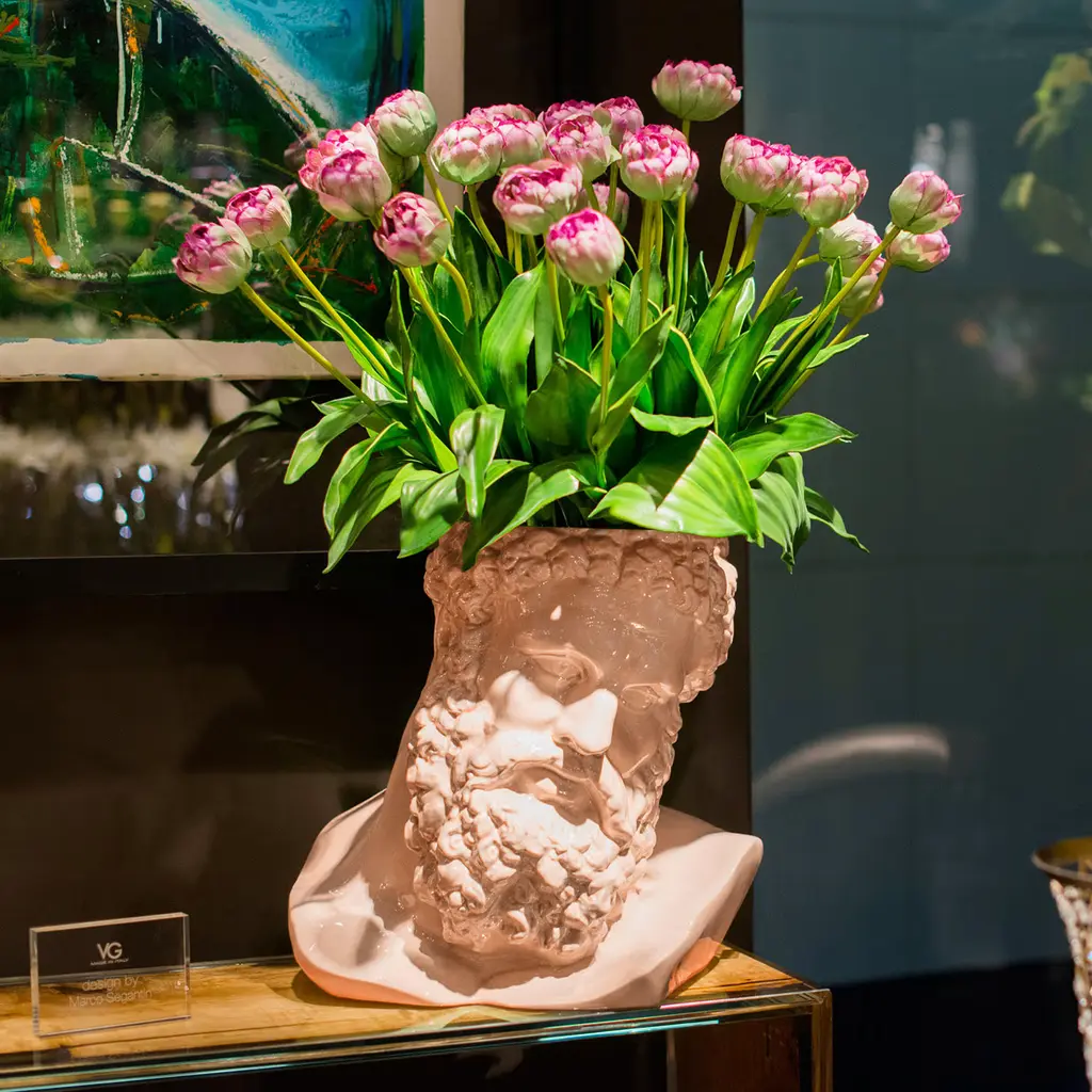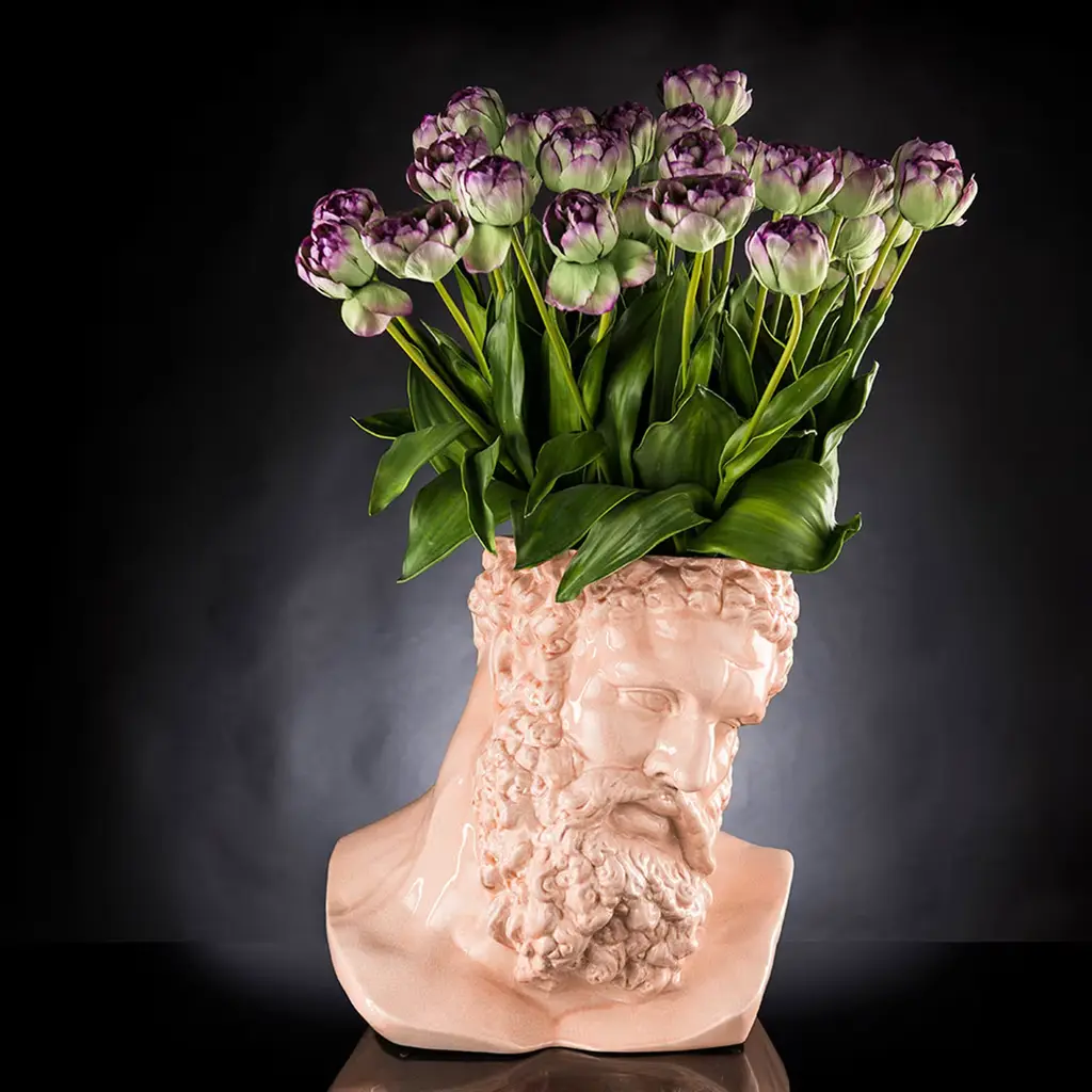 Classical Italian art meets modern styling and artisanal flair with the Hercules Cantaloupe Vase. Depicting the famous hero from ancient Greek mythology, this decorative piece is beautifully crafted from ceramic with a stunning orange finish. Handcrafted in Italy, this vase makes an artistic addition to any contemporary or traditional interior.