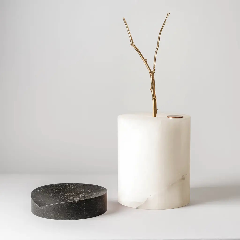 Alimonti Milano's Marmoreals Collection, crafted by Gennaro Avallone, unites the extraordinary potential of marble with the innovative vision of the artist. Focused on refined textures and artisanal experimentation, this limited edition sculpture series elegantly blends Anthracite, Pink Onyx, and Ostuni White. These pieces, harmonizing opposites, exist in single hues or contrasting combinations of natural stones and bronze casting, paying homage to the material.