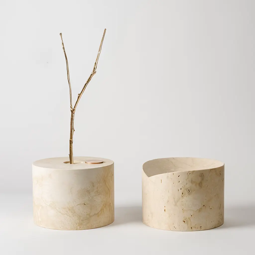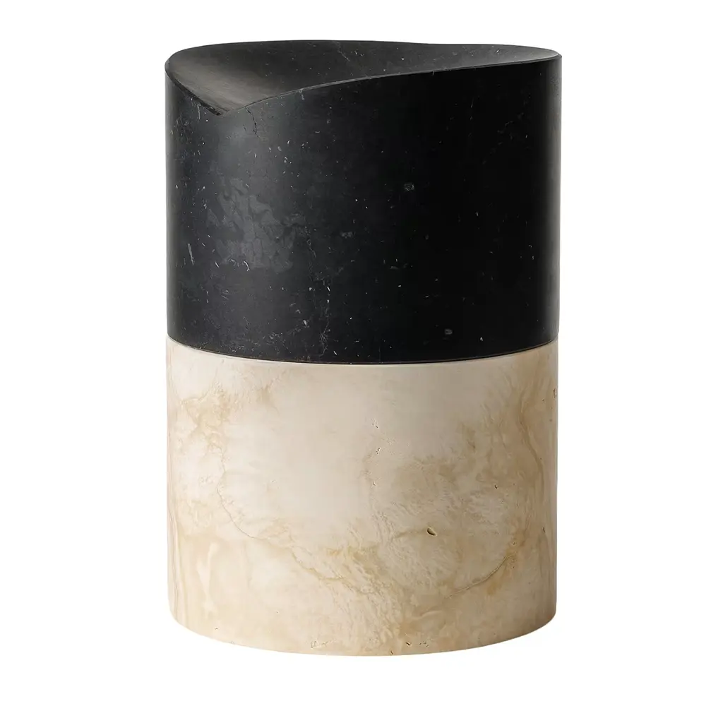 Alimonti Milano's Marmoreals Collection, crafted by Gennaro Avallone, unites the extraordinary potential of marble with the innovative vision of the artist. Focused on refined textures and artisanal experimentation, this limited edition sculpture series elegantly blends Anthracite, Pink Onyx, and Ostuni White. These pieces, harmonizing opposites, exist in single hues or contrasting combinations of natural stones and bronze casting, paying homage to the material.
