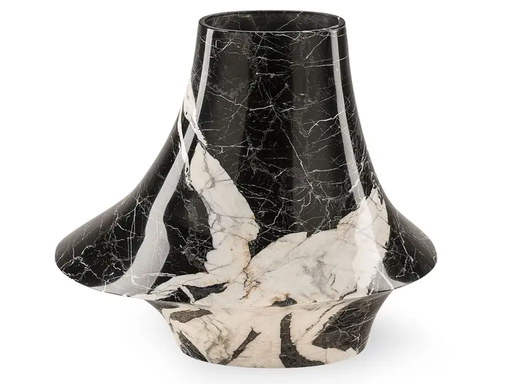 The Hermes Vase is a tasteful accent piece for imbuing your interior space with rich textures and abstract patterns. Crafted from glass in a gorgeous Mercury finish, the piece features a mixture of black and beige hues that are overlain with stunning white flourishes. This artistic vase greatly elevates an interior space on its own, but can also be placed alongside its larger variant for an enhanced look.