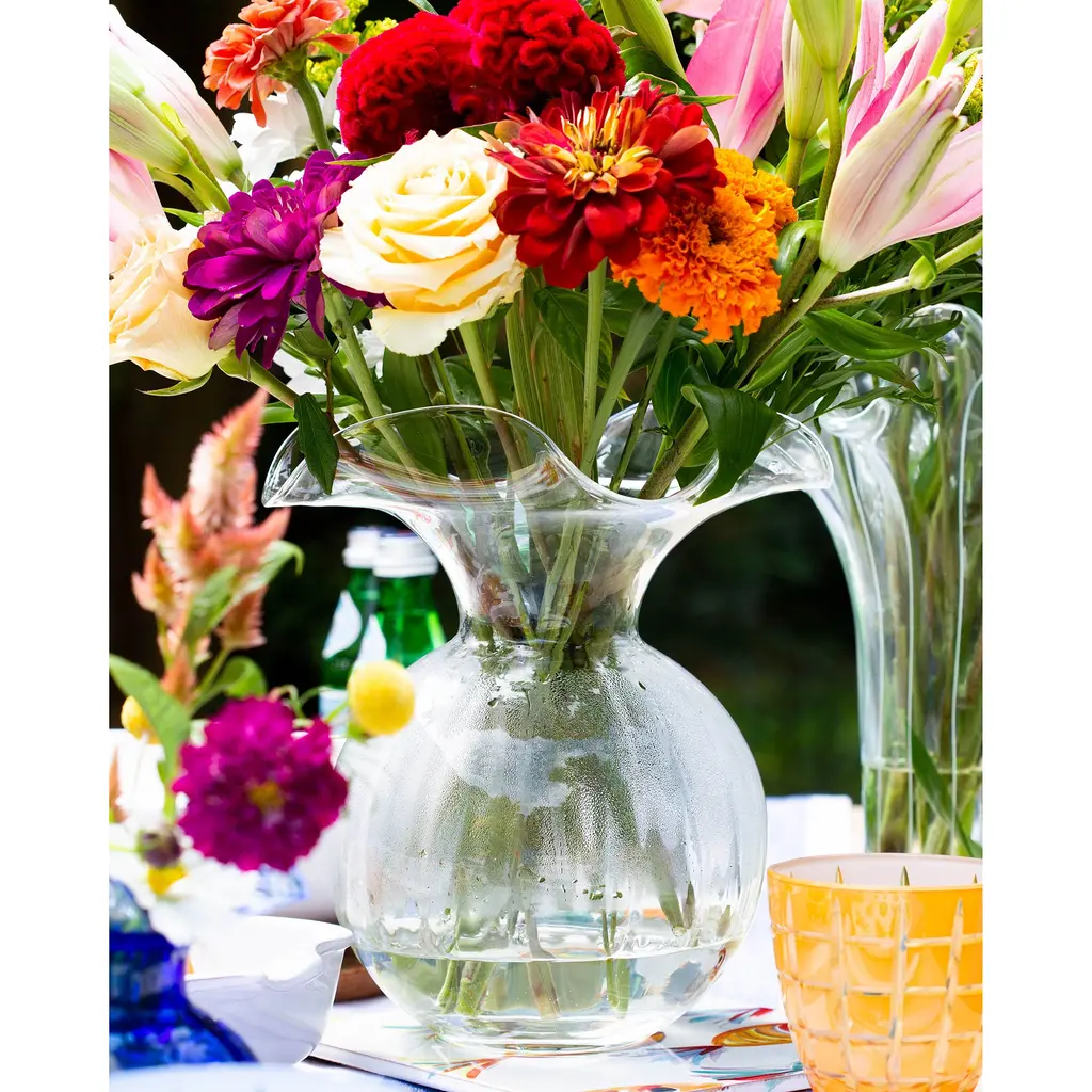 Beautifully mouth blown in Italy, this vase showcases a graceful silhouette inspired by the delicate petals of the hibiscus.