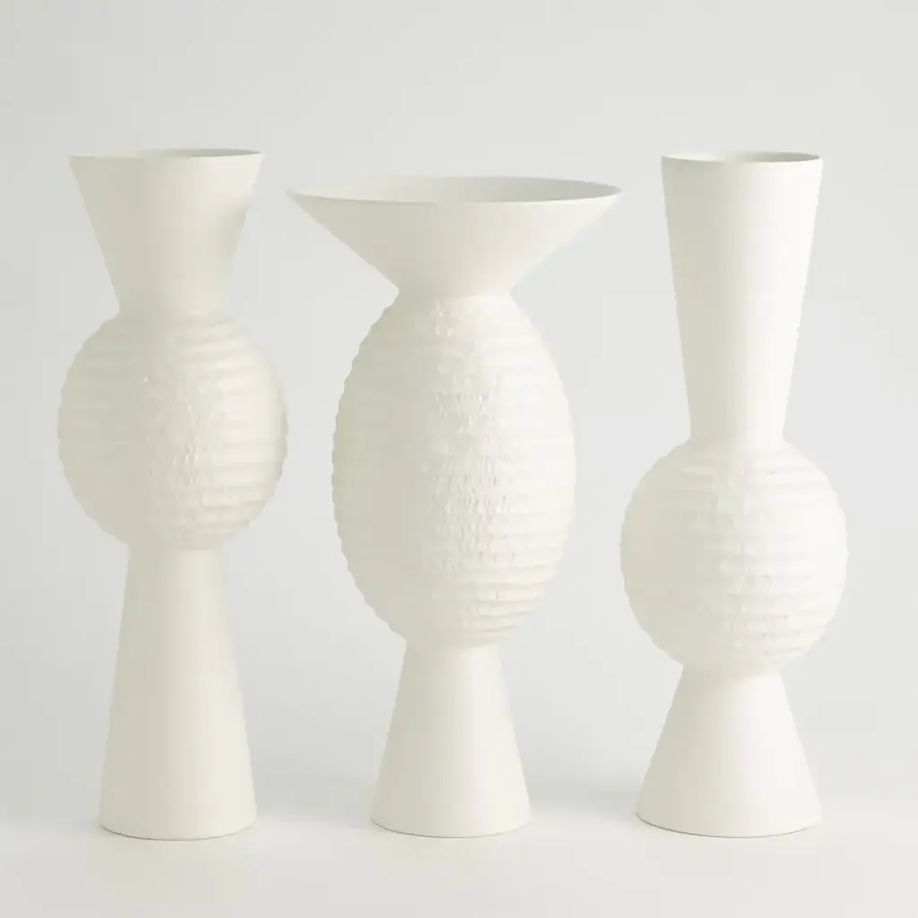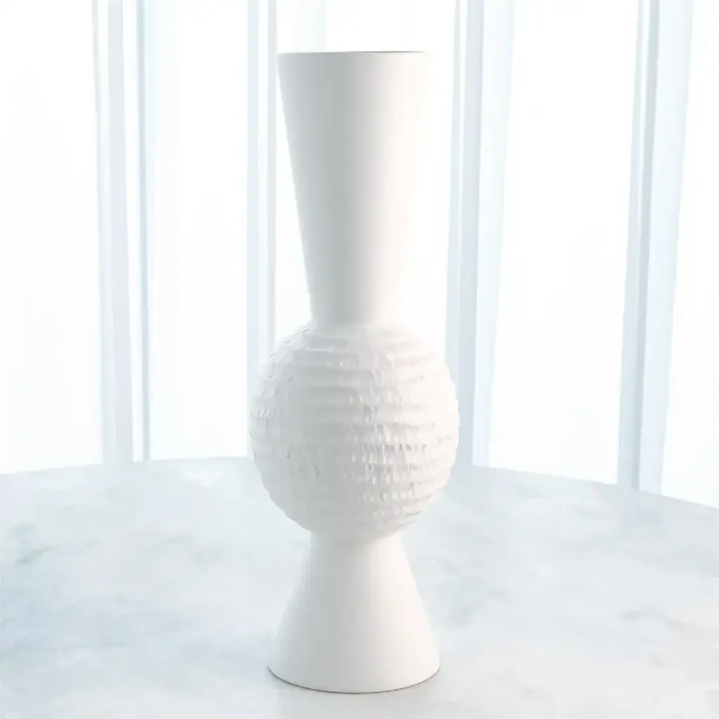 With a hand chiseled design by Portuguese artisans, The Chiseled Orb Vases are made of slip cast ceramic with a matte white finish. From a fashion forward perspective, Global Views offers accessories, furniture, statement lighting, and an assortment of rugs and mirrors to add beauty and joy to your home.