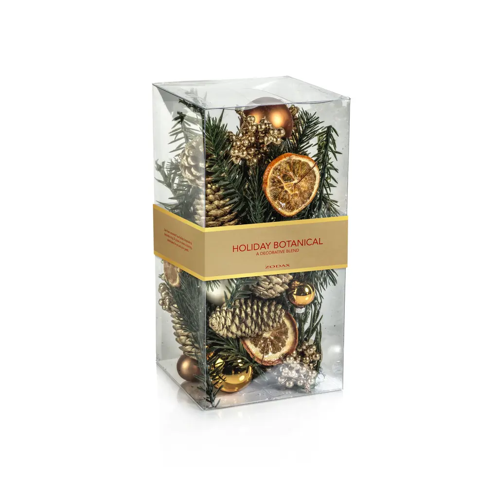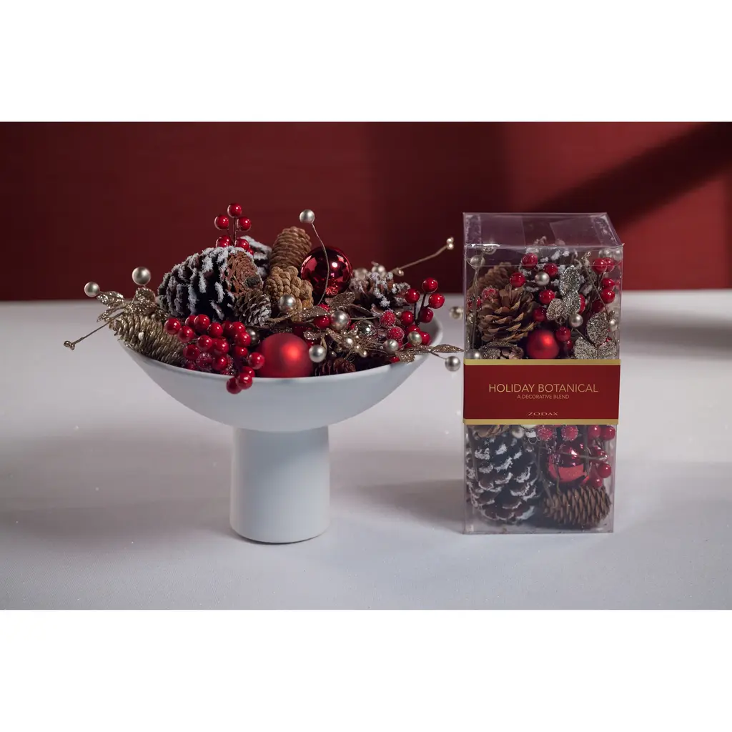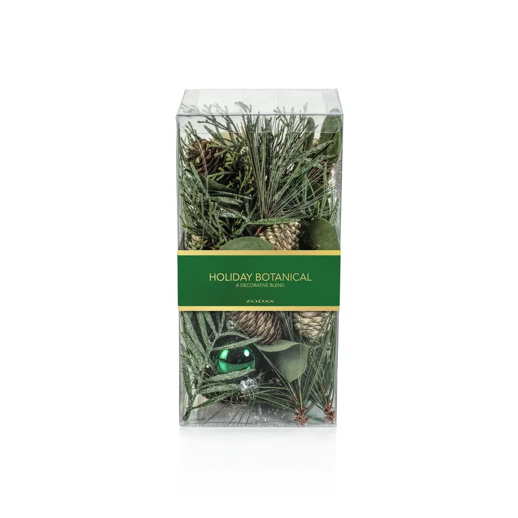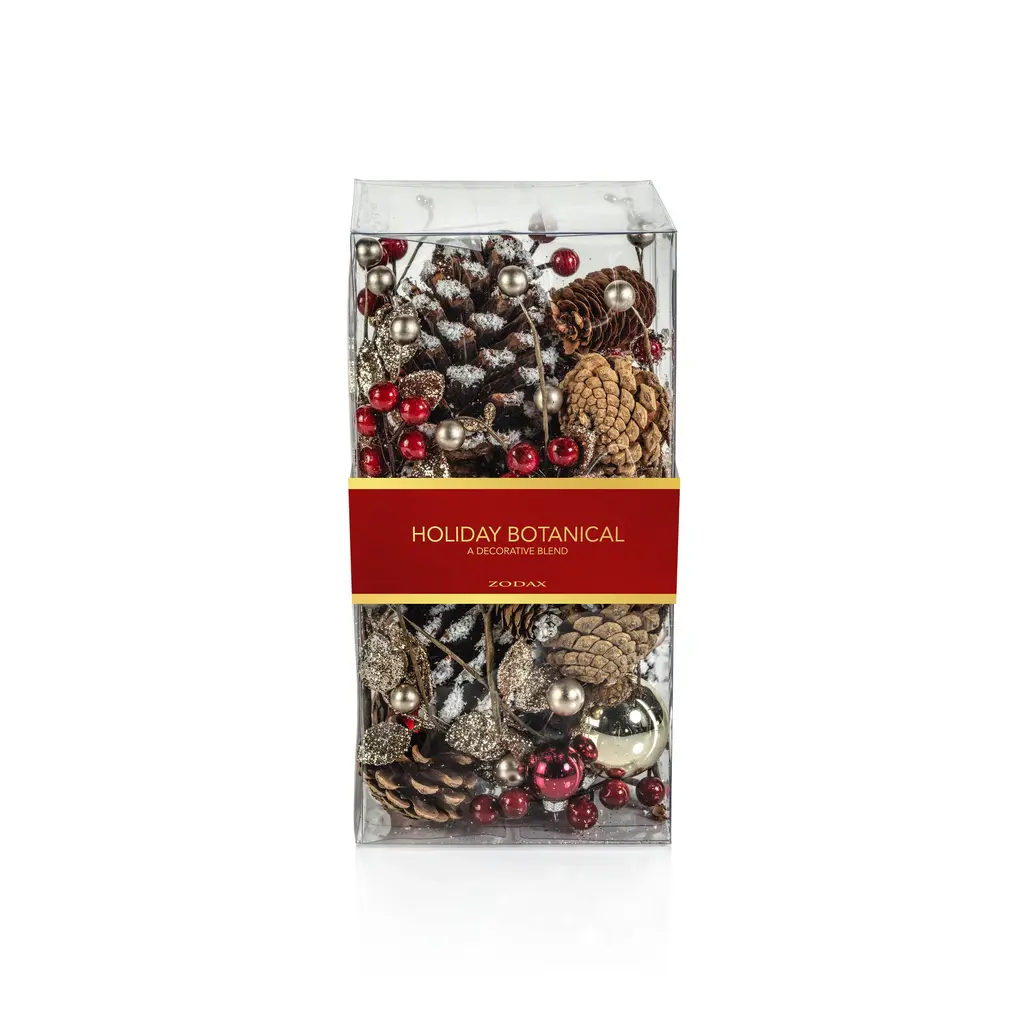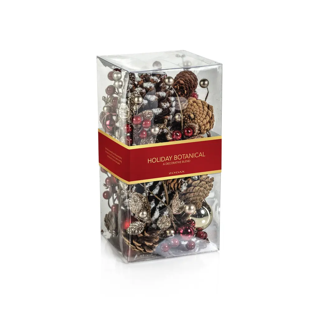 Holiday Botanical features an unscented mix of pinecones, faux greenery, and ball ornaments. The filler is great for displaying throughout the holiday season and it adds color and texture to any vase or decorative bowl. Features: Mix of pinecones, faux greenery and ball ornaments Add colorful vibes Comes in a clear plastic box Dust with dry cloth or blow dry on cool setting